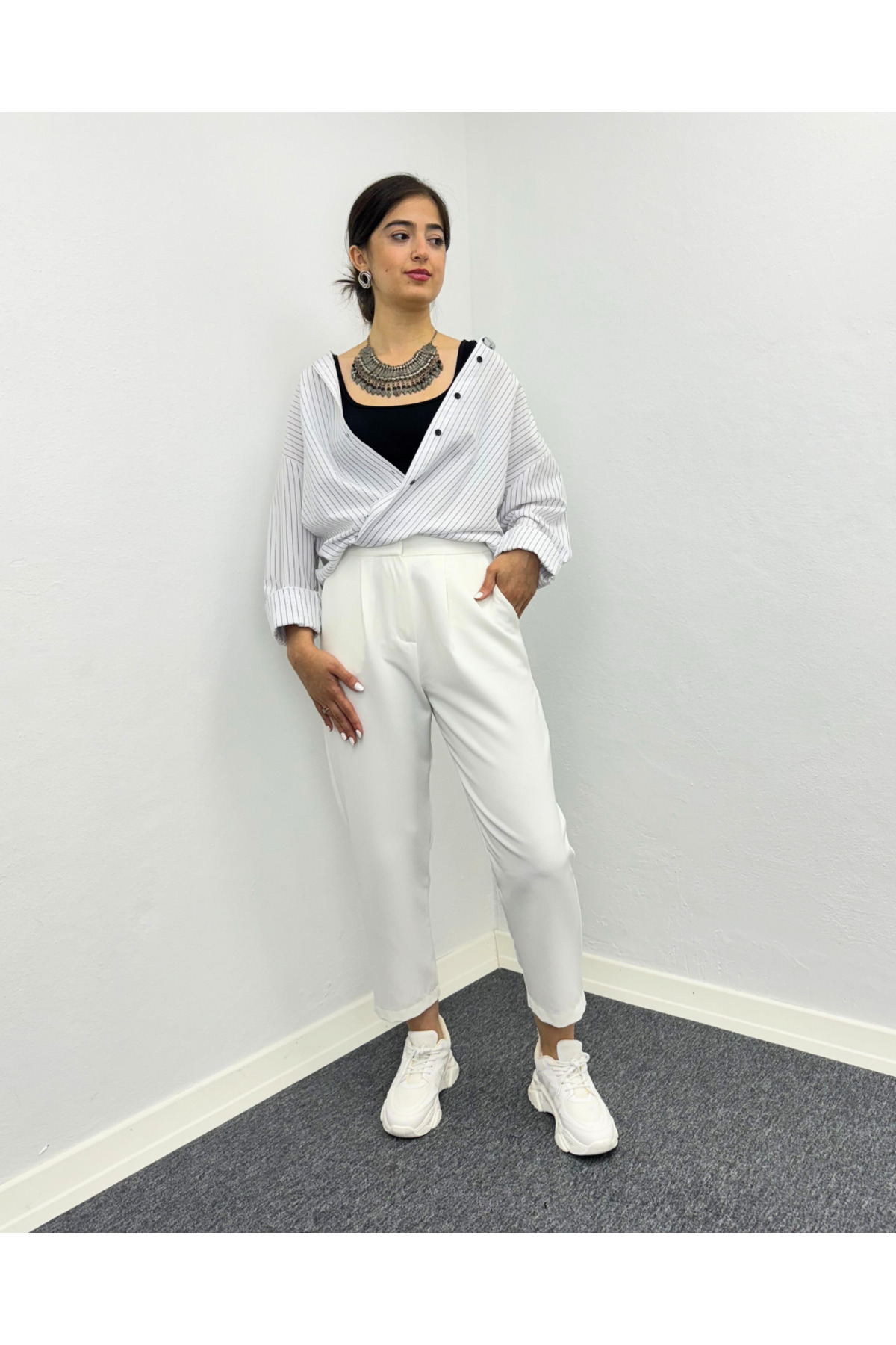 Arka Kemer Lastikli Duoble Krep Bilek Boy Pantolon Arka Kemer Lastikli Duoble Krep Bilek Boy Pantolon PNT19 40
