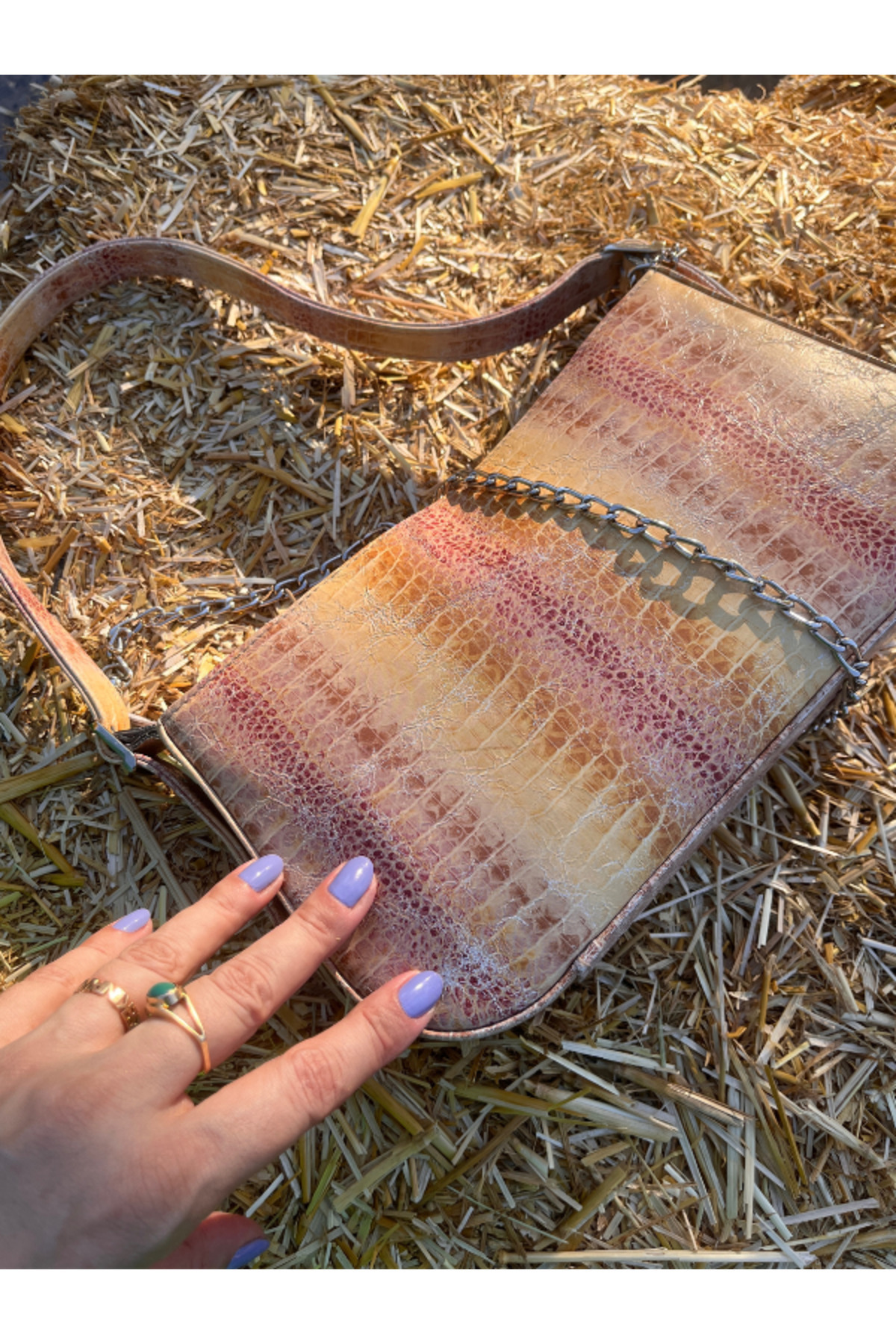 İkon Model Camgöbeği Mavi Hakiki Deri Kroko Baskılı Baget Stil Omuz Çantası İkon Model Camgöbeği Mavi Hakiki Deri Kroko Baskılı Baget Stil Omuz Çantası İkonmodelhakikideri تک سایز