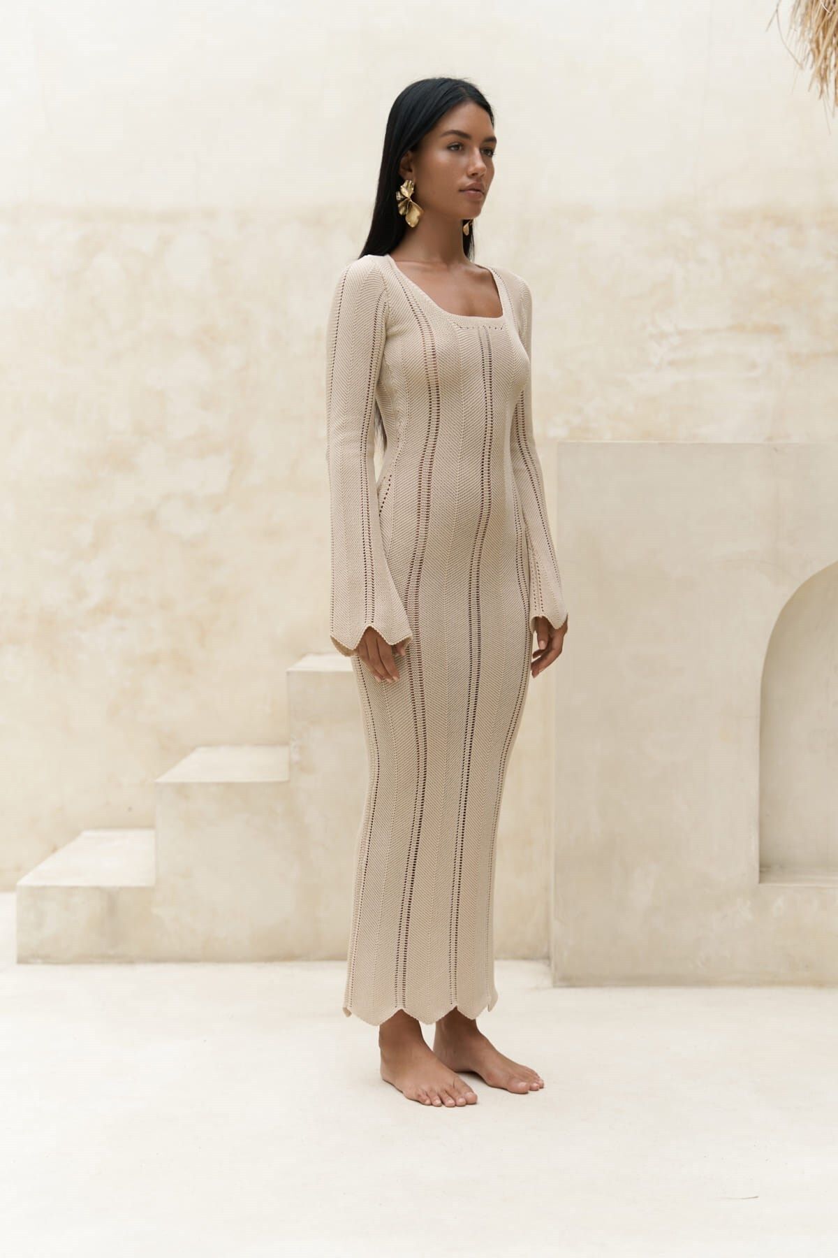 Paulina Dantel Örgülü Bej Triko Elbise Paulina Dantel Örgülü Bej Triko Elbise 2912 M/L