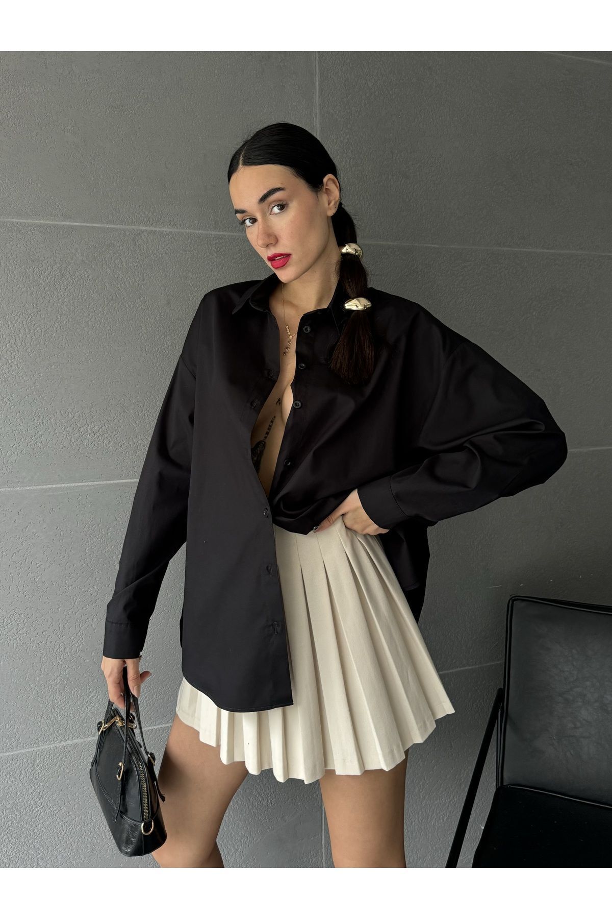 Tek Cepli Oversize Gömlek Mavi Tek Cepli Oversize Gömlek Mavi P6181S1177 L