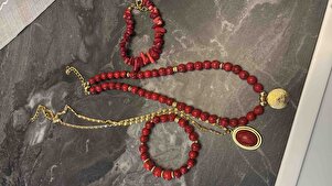 ( 2 Kolye ) Doğal Taş Kırmızı Mercan Taşı Hasır Altın Kaplama Zincir Ve Uç Kadın Kolye Özel Hediye ( 2 Kolye ) Doğal Taş Kırmızı Mercan Taşı Hasır Altın Kaplama Zincir Ve Uç Kadın Kolye Özel Hediye kuvarskırmızı M
