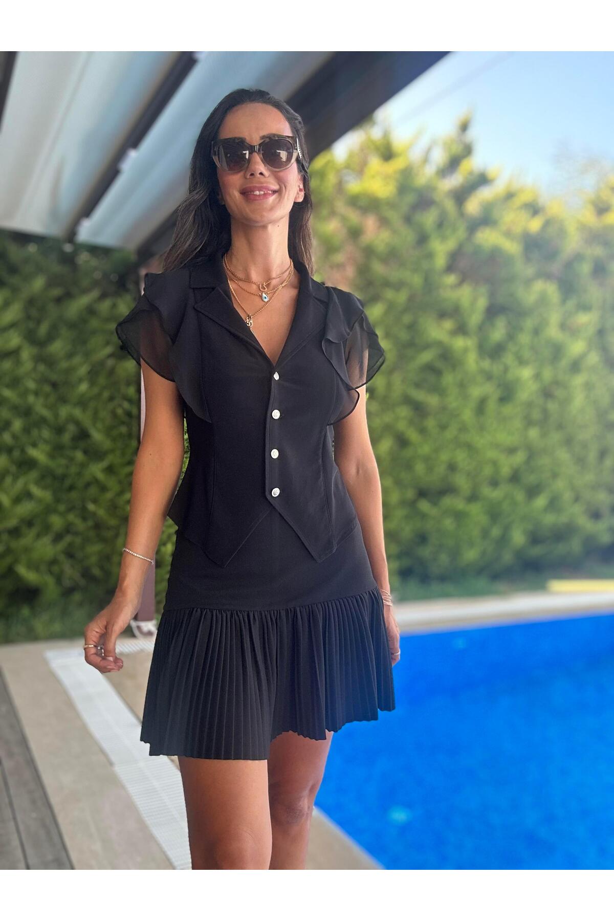 Siyah Krep Kumaş Yelek Siyah Krep Kumaş Yelek AD2352 42
