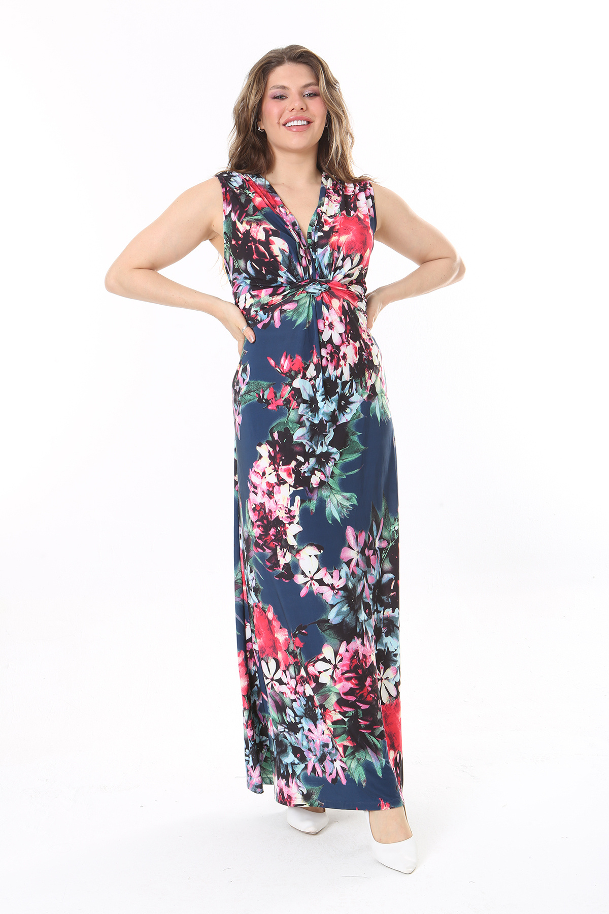 Kadın Büyük Beden Renkli Göğüs Büzgü Detaylı Kuşaklı Elbise 65N37966 Kadın Büyük Beden Renkli Göğüs Büzgü Detaylı Kuşaklı Elbise 65N37966 48-50