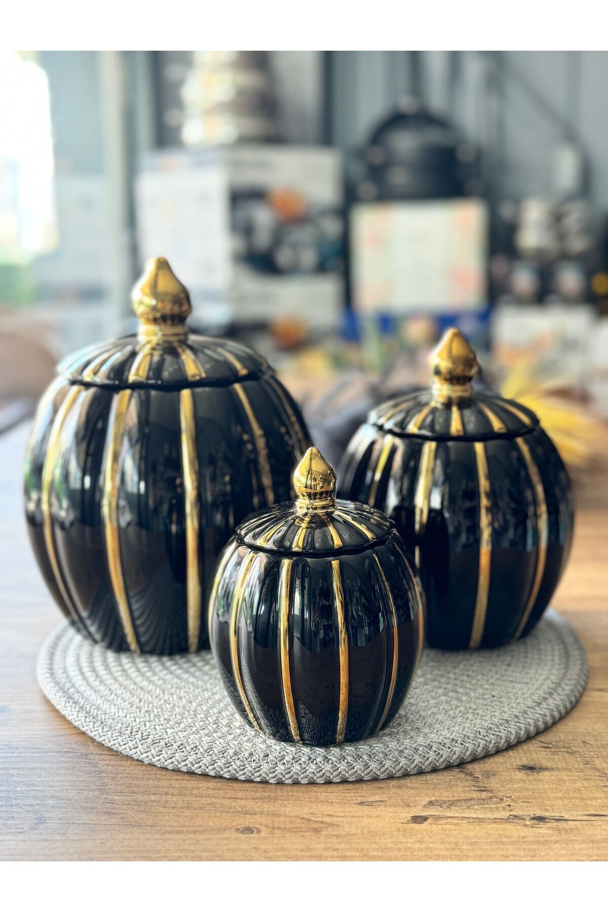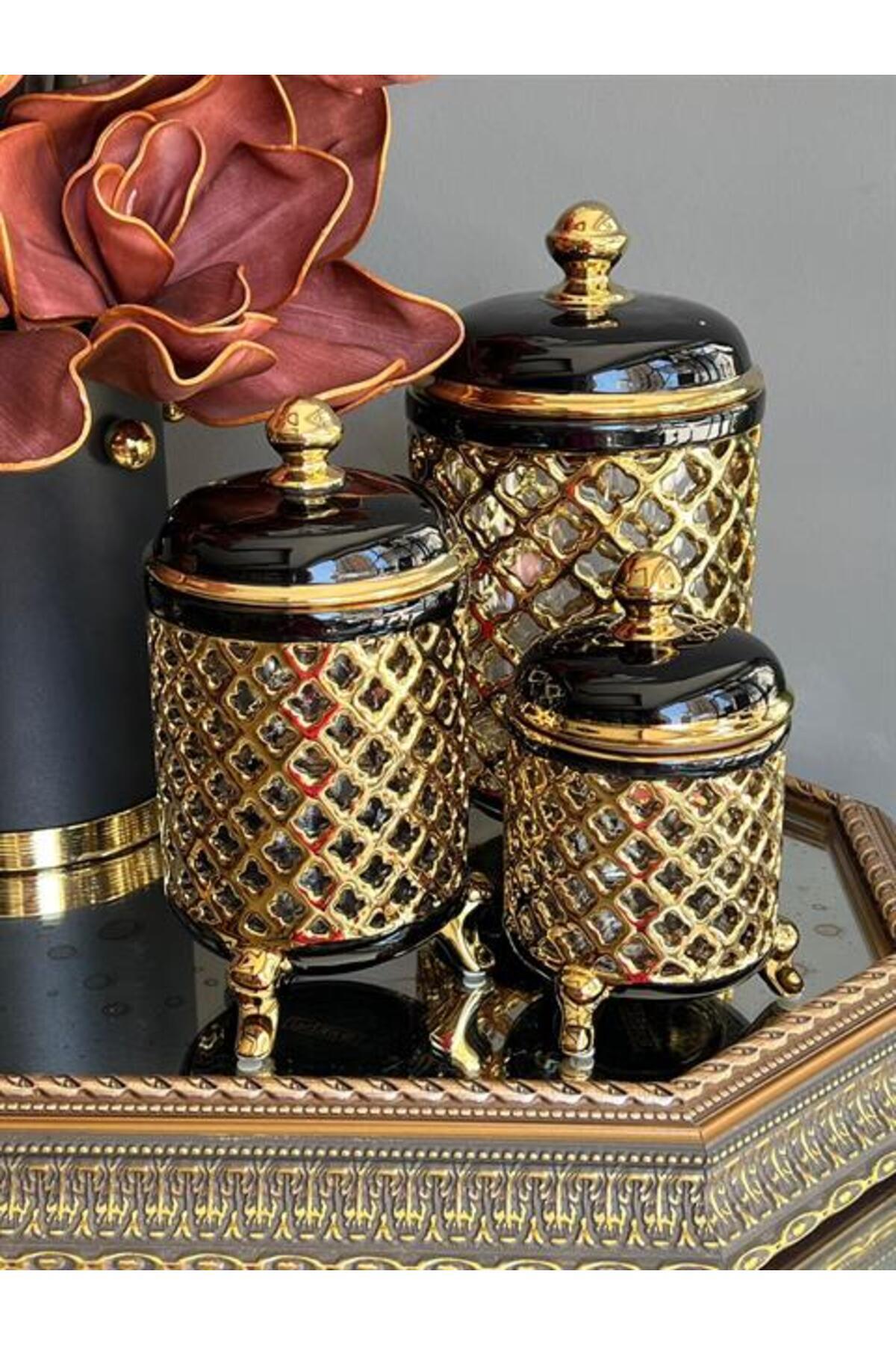 Wicker Vakum Kapaklı Kavanoz Set 3‘lü Siyah Gold Wicker Vakum Kapaklı Kavanoz Set 3‘lü Siyah Gold Ysg-036-037-038 تک سایز