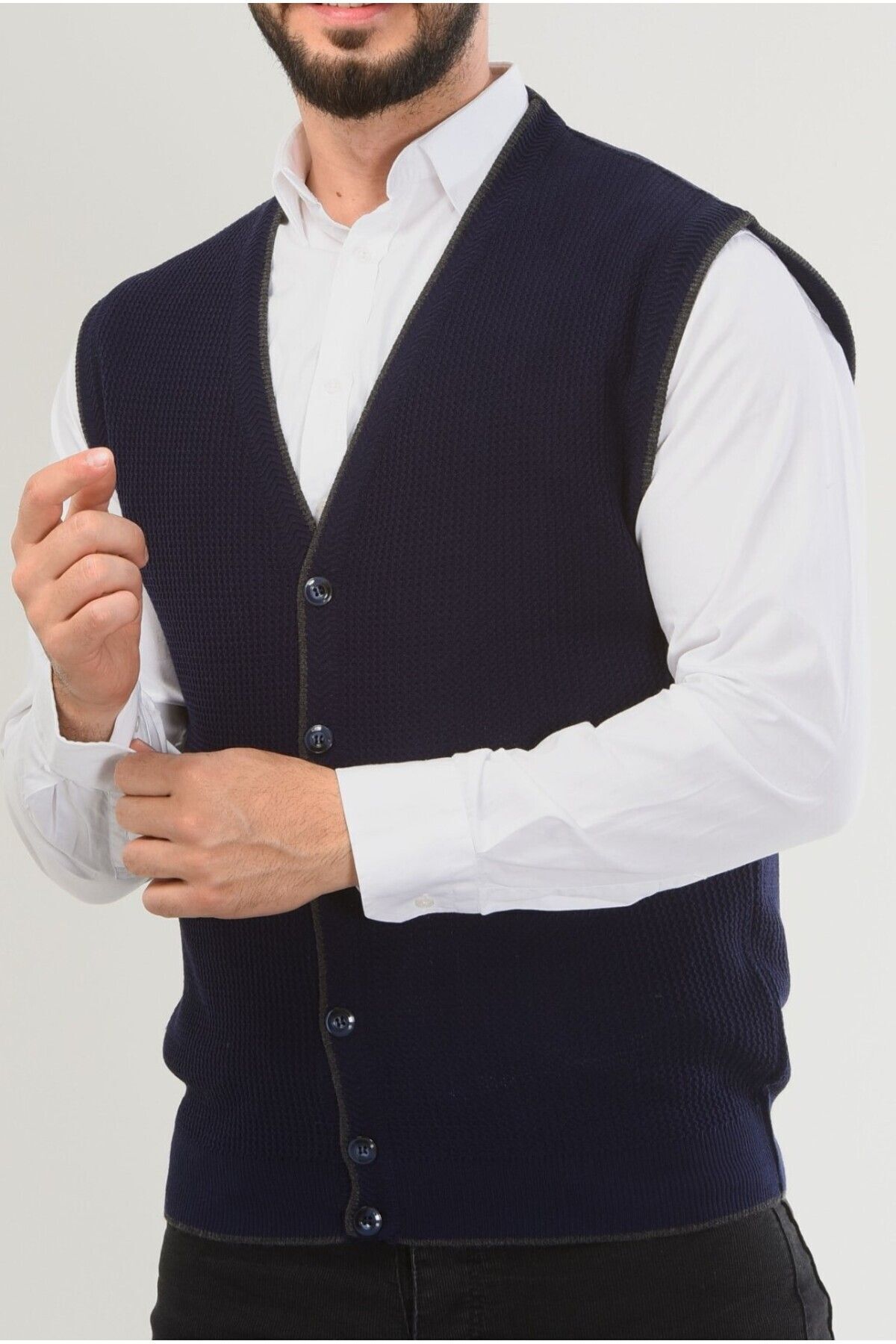 Lacivert Erkek V Yaka Triko Düğmeli Cepli Çizgi Desenli Regular Fit Tüylenmeyen Örgü Yelek Lacivert Erkek V Yaka Triko Düğmeli Cepli Çizgi Desenli Regular Fit Tüylenmeyen Örgü Yelek kml404ylk XL