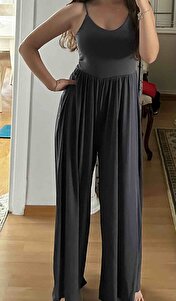 Askılı Model Beli Lastikli Bol Paça Sandy Kumaş Tulum Askılı Model Beli Lastikli Bol Paça Sandy Kumaş Tulum MİN 001 L