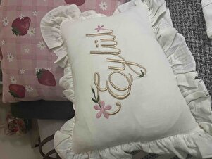Müslin Kumaş Fırfırlı Takı Yastığı (Kişiye Özgü İsimli Nakış Desenli) Müslin Kumaş Fırfırlı Takı Yastığı (Kişiye Özgü İsimli Nakış Desenli) TYMK تک سایز