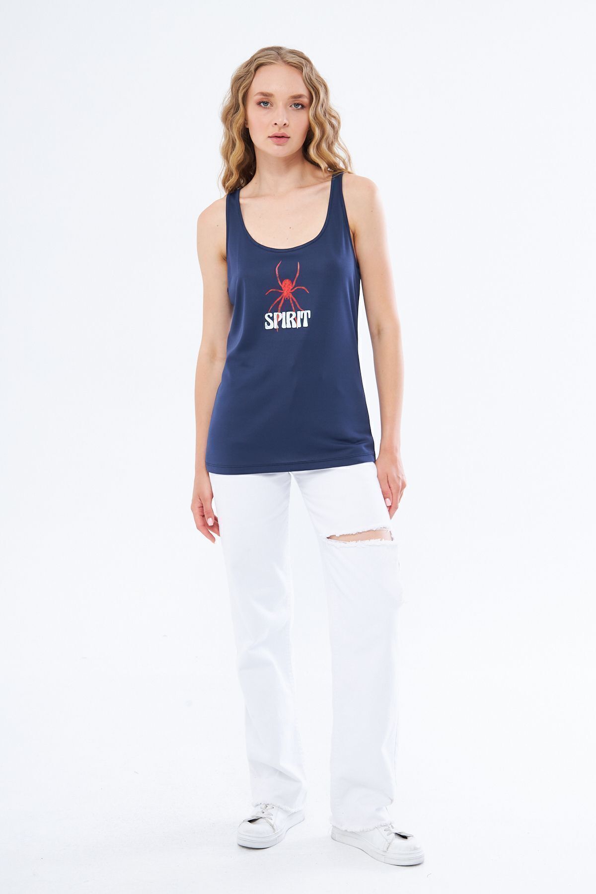 Spor Kalın Askılı Atlet Lacivert Renk Spırıt Baskılı Spor Kalın Askılı Atlet Lacivert Renk Spırıt Baskılı SUFDGG564 2XL
