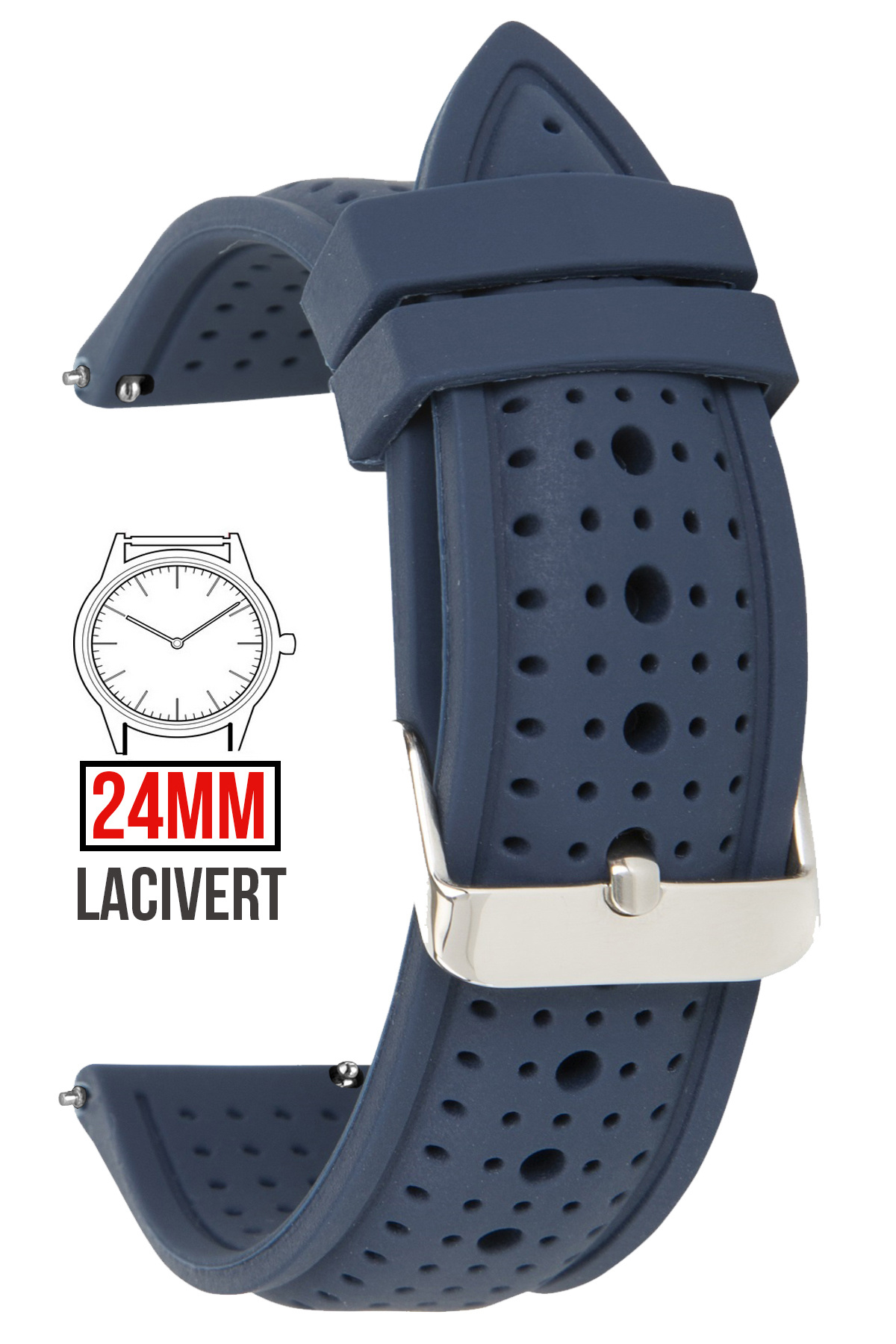 مشخصات فنی 24mm Fossil-Welder-Casio-Seiko-Omega-Armani Saat Uyumlu Silikon Saat Kordonu Kayışı 24S26B رنگ آبی سرمه ای جنس سیلیکون Menşei CN مشخصات کلی