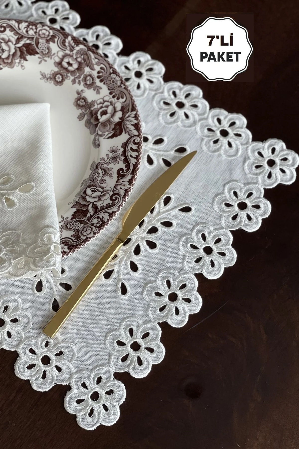 2'li Set Çiçek Nakışlı Kokteyl Peçetesi 2'li Set Çiçek Nakışlı Kokteyl Peçetesi QBR2200X2 تک سایز