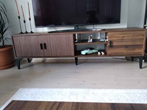 Marin Tv Ünitesi 180 cm - Orta Sehpa Seti Çizgi desenli , Raflı , Ceviz (Sandık) Marin Tv Ünitesi 180 cm - Orta Sehpa Seti Çizgi desenli , Raflı , Ceviz (Sandık) CH-86 تک سایز