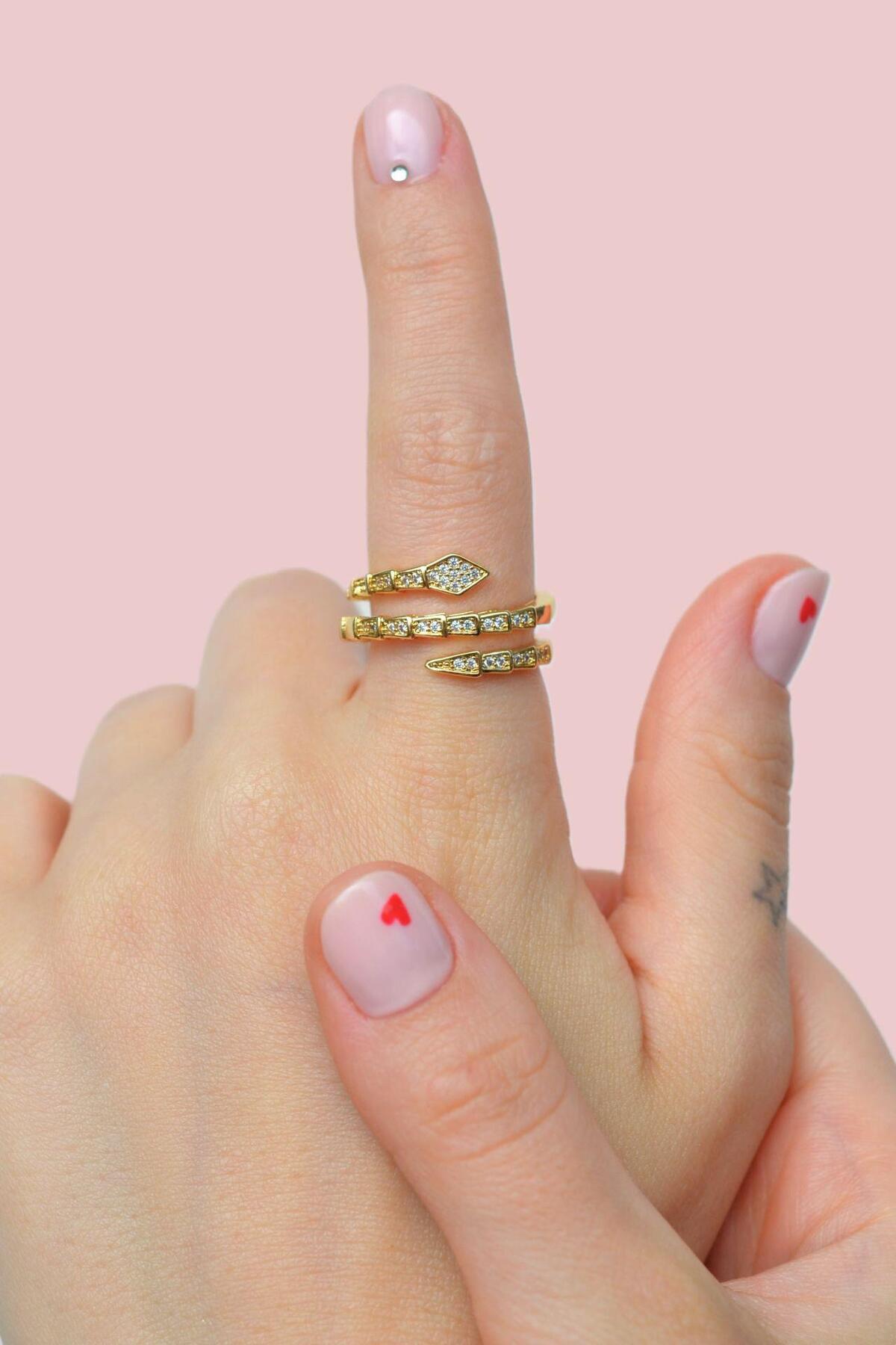 Ayarlanabilir Taşlı Dolanmış Yılan Figürlü Yüzük Gold Renk Ayarlanabilir Taşlı Dolanmış Yılan Figürlü Yüzük Gold Renk DYJQFMJHPP تک سایز