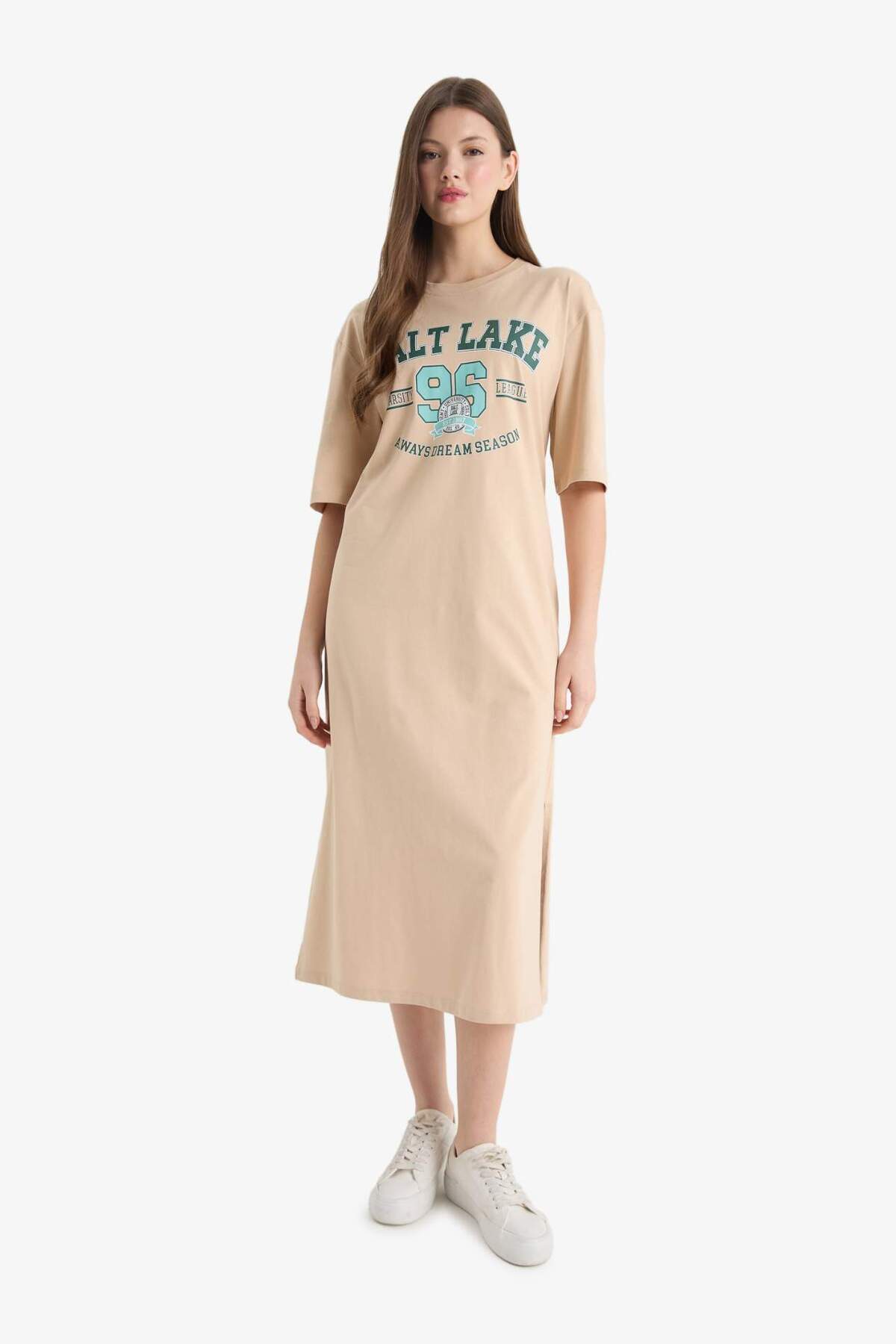 Bisiklet Yaka Baskılı Penye Kısa Kollu Midi Elbise C8687AX24SM Bisiklet Yaka Baskılı Penye Kısa Kollu Midi Elbise C8687AX24SM M/L