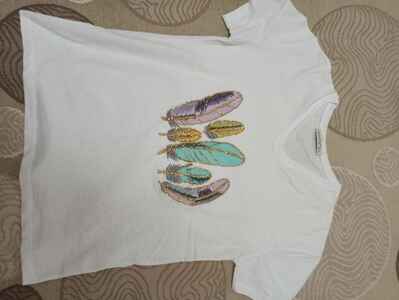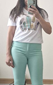 Kadın Beyaz T-Shirt Gold Pul Islemeli V Yaka %100 Pamuklu Kadın Beyaz T-Shirt Gold Pul Islemeli V Yaka %100 Pamuklu SNP0009 L
