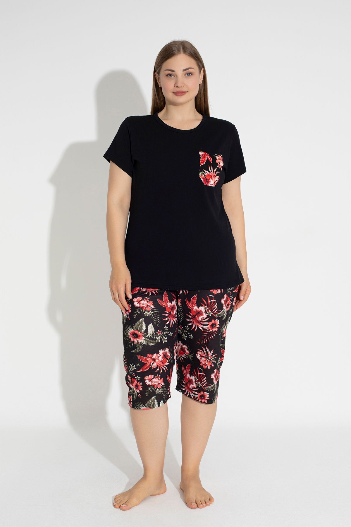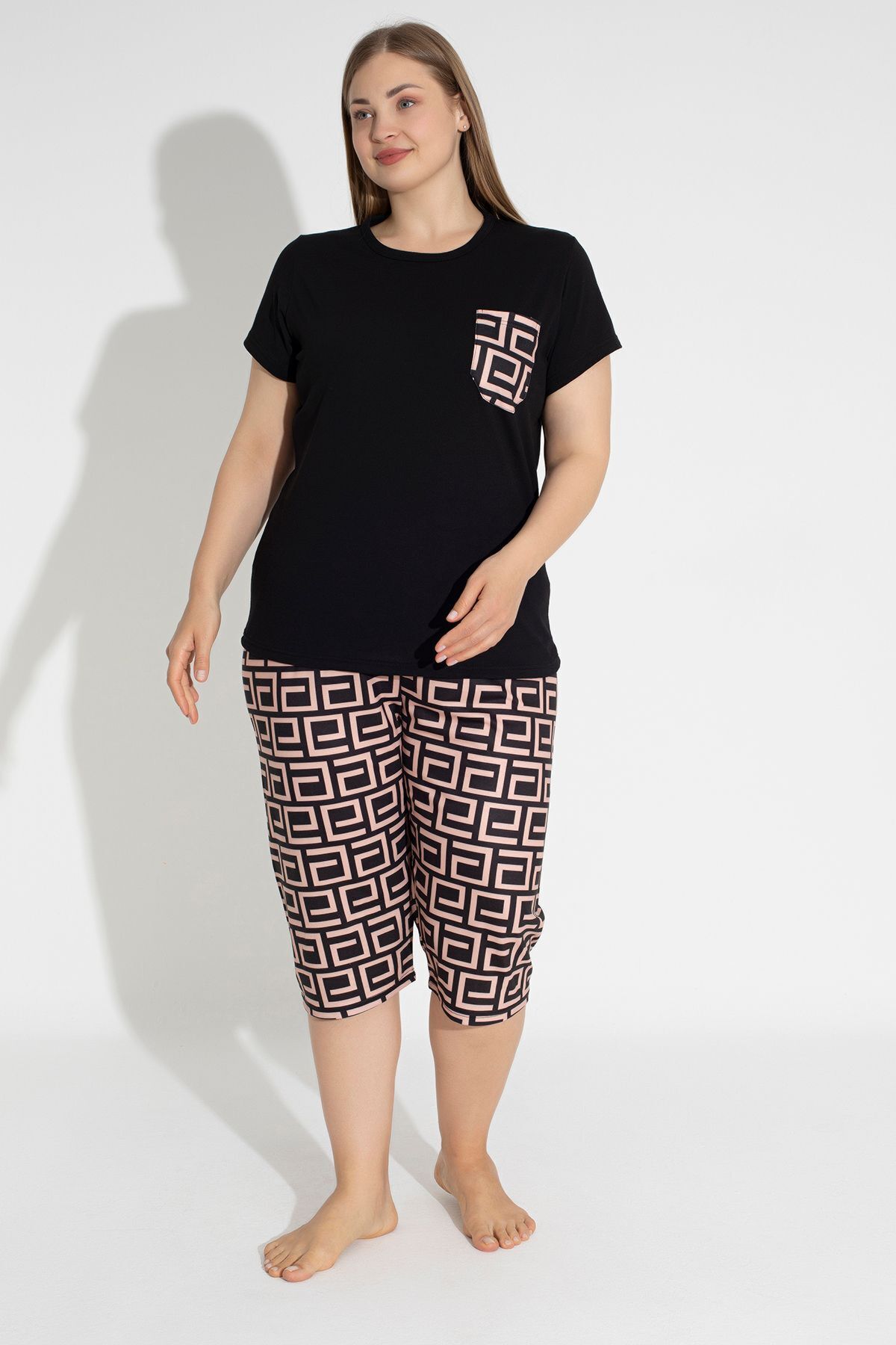 Pembe Çizgili Kısa Kollu Rahat Kesim Büyük Beden Kapri Pijama Takımı 30007 Pembe Çizgili Kısa Kollu Rahat Kesim Büyük Beden Kapri Pijama Takımı 30007 7XL