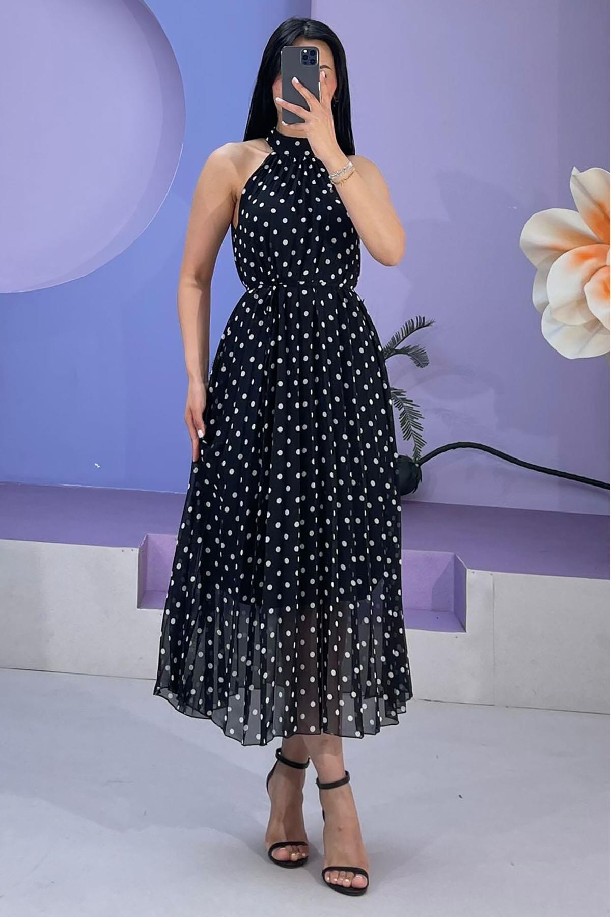 Siyah Puantiyeli Sıfır Kol Halter Yaka Elbise MG2134 Siyah Puantiyeli Sıfır Kol Halter Yaka Elbise MG2134 2XL