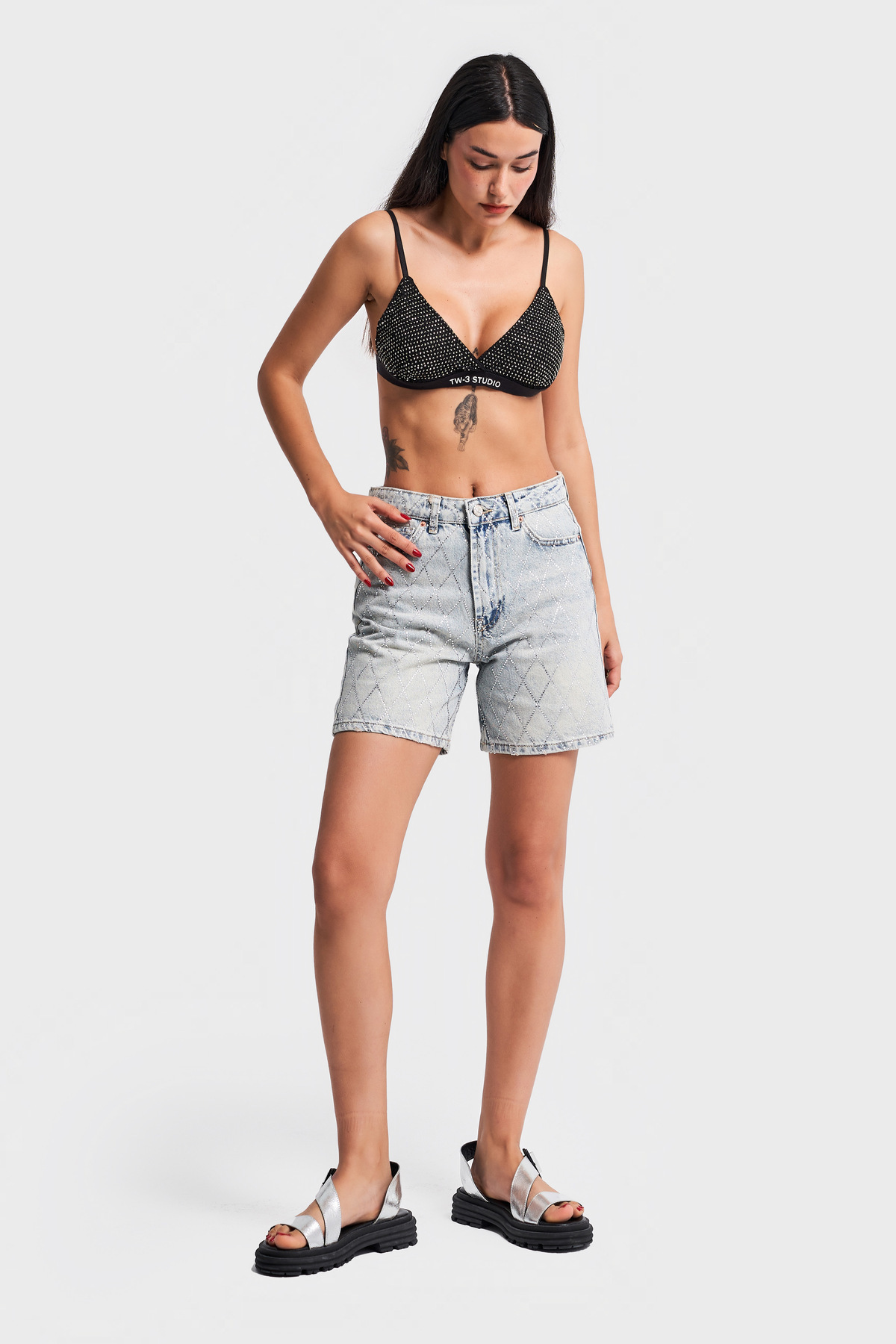 Kadın Tint Renk Önü Parlak Taşlı Mom Fit Denim Şort Kadın Tint Renk Önü Parlak Taşlı Mom Fit Denim Şort ITSBASIC 3321 42