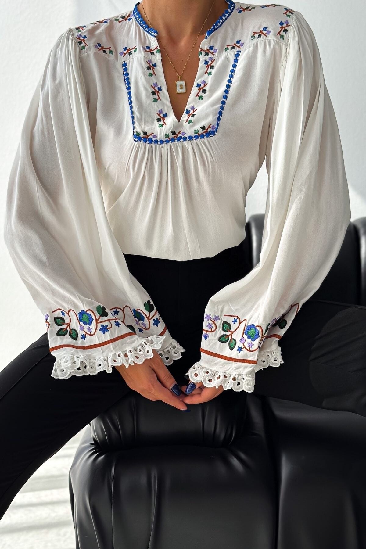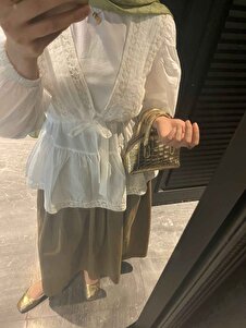 Kadın Beyaz Etek Ucu Ve Yakası Dantel İşlemeli Robalı Pamuklu Bluz Kadın Beyaz Etek Ucu Ve Yakası Dantel İşlemeli Robalı Pamuklu Bluz 1840 L