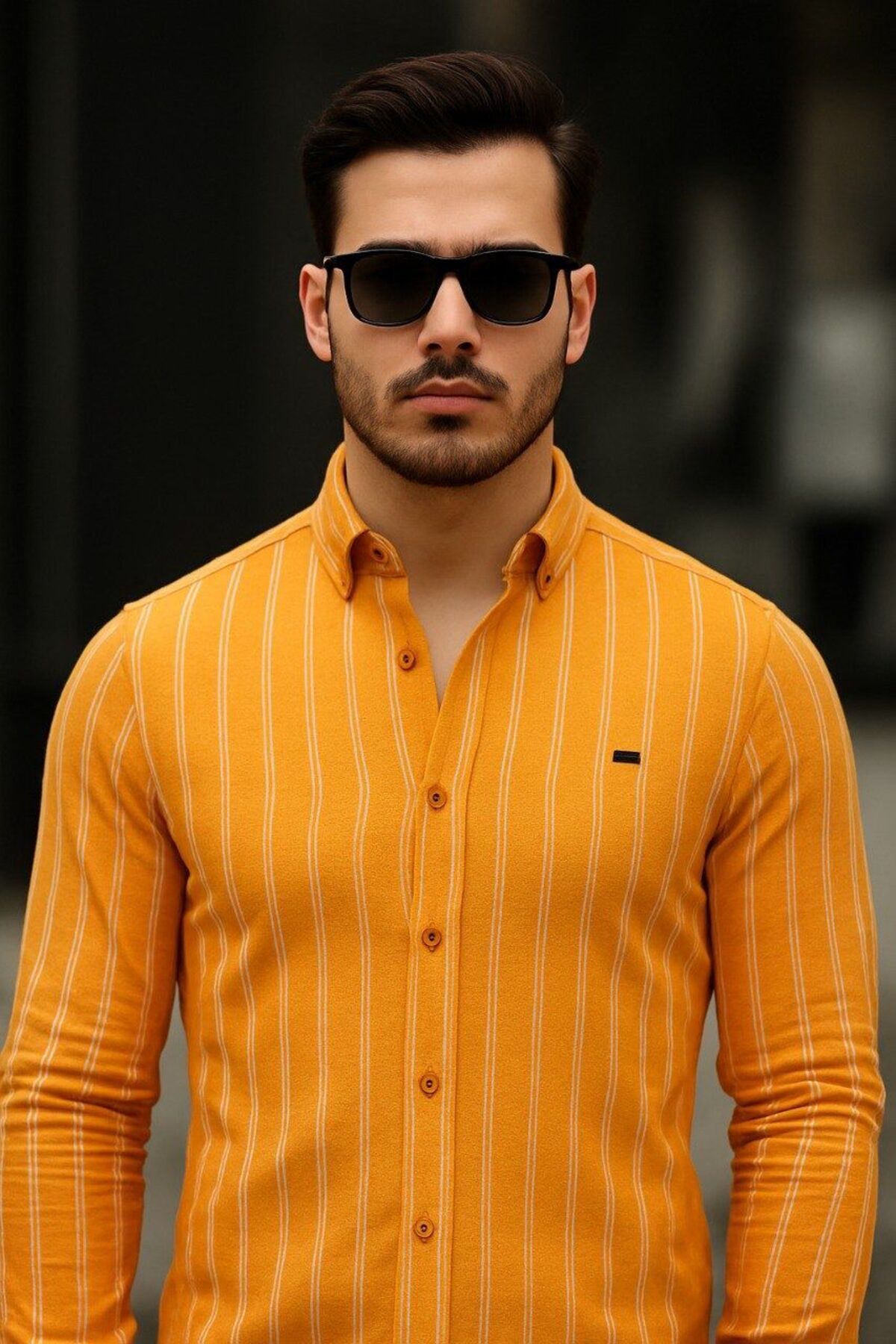 Erkek Kiremit Uzun Kollu Cepli Pamuk Slim Fit Çizgili Yazlık Gömlek Erkek Kiremit Uzun Kollu Cepli Pamuk Slim Fit Çizgili Yazlık Gömlek TRP24-240524UK 2XL