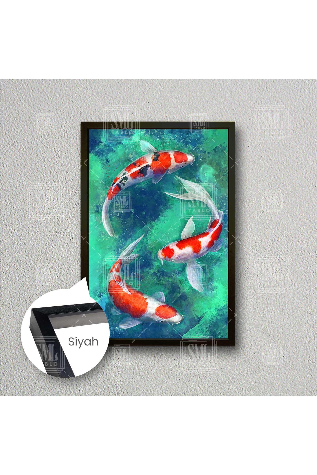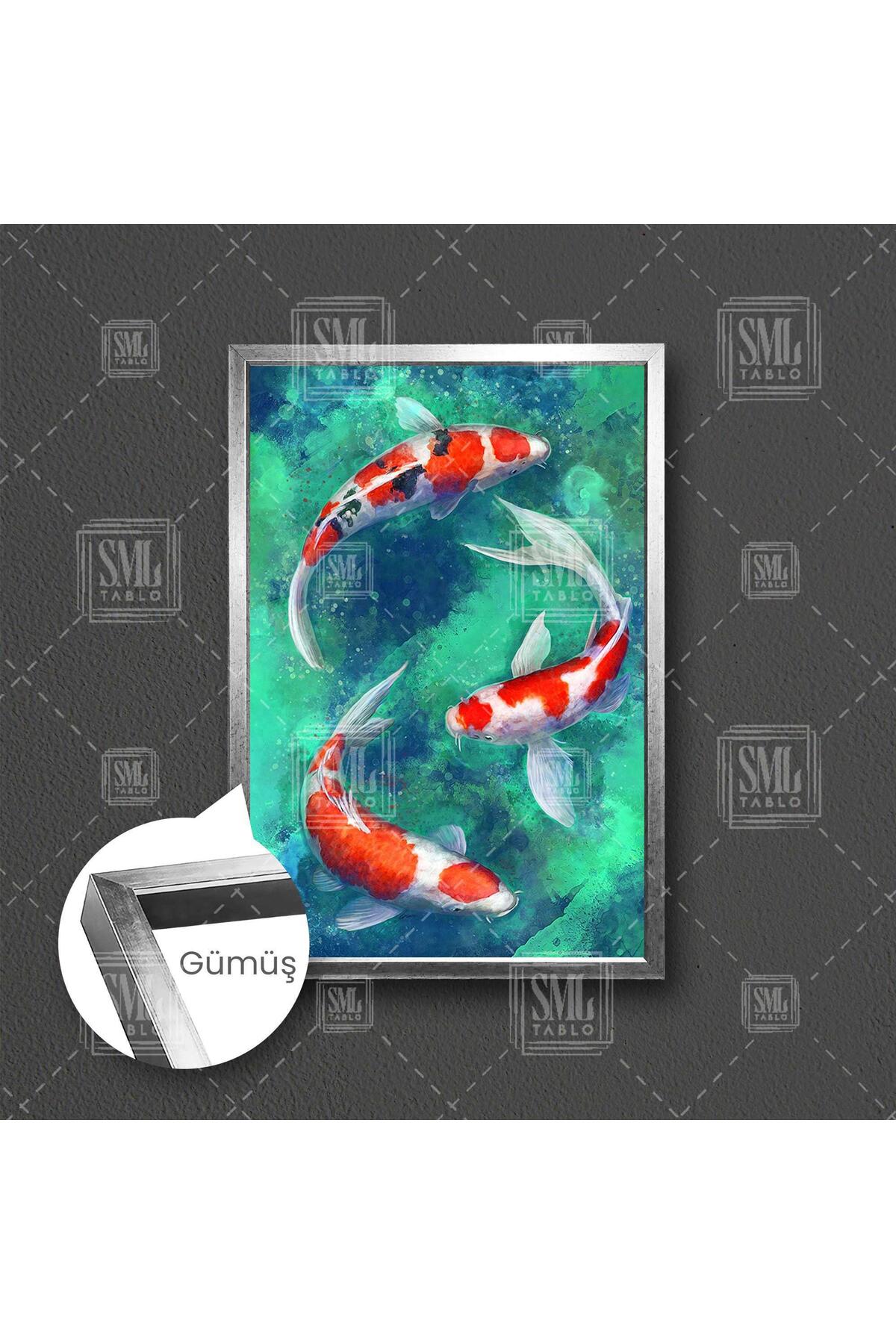 Birbirini Takip Ederek Yüzen Üç Koi Balığı Çerçeveli Dikey Kanvas Tablo Birbirini Takip Ederek Yüzen Üç Koi Balığı Çerçeveli Dikey Kanvas Tablo CT1011815 100 x 150