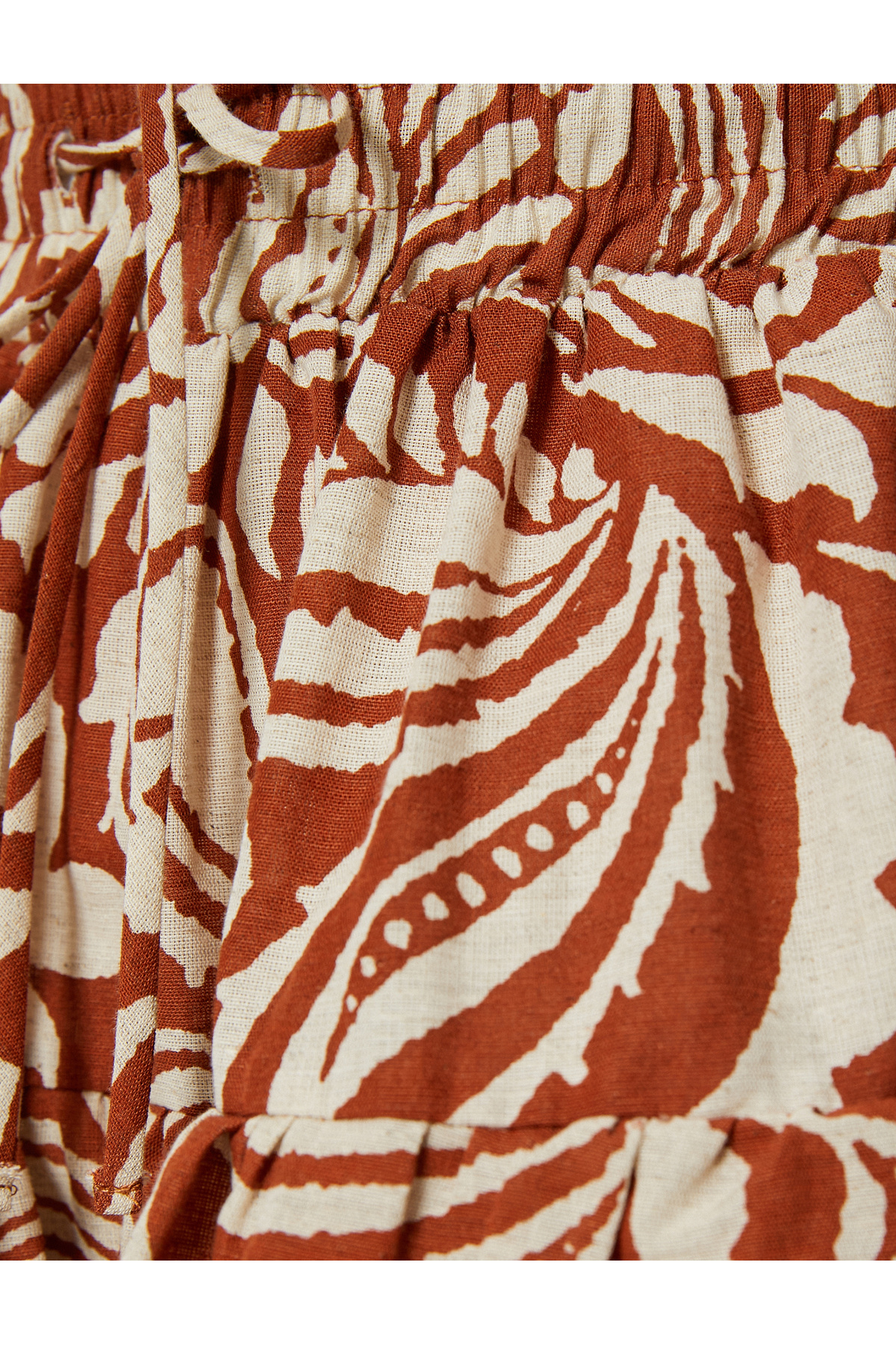 Mini Fırfırlı Etek Keten Karışımlı Çiçekli Katlı Mini Fırfırlı Etek Keten Karışımlı Çiçekli Katlı 4SAK70180EW 42