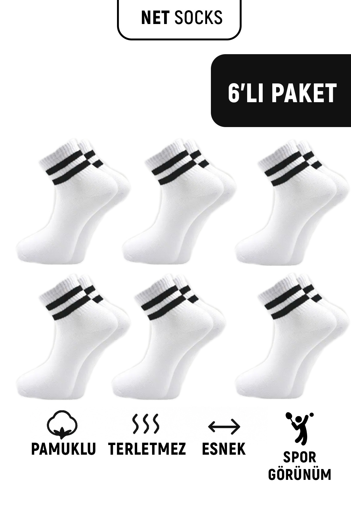 4lü Beyaz Siyah Çizgili Düz Karışık Tenis Çorap - Unisex 4lü Beyaz Siyah Çizgili Düz Karışık Tenis Çorap - Unisex SOCKNGN005 37-44