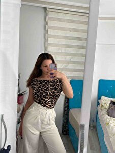 Kadın Kısa Kol Kayık Yaka Büyük Leopar Desen Viskon Premium Yazlık Bluz Kadın Kısa Kol Kayık Yaka Büyük Leopar Desen Viskon Premium Yazlık Bluz BLZ-202435 L