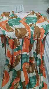 Kadın Turuncu Yeşil Geometrik Desen Kruvaze Yaka Esnek Bel Büyük Beden Elbise Kadın Turuncu Yeşil Geometrik Desen Kruvaze Yaka Esnek Bel Büyük Beden Elbise 2401101 52-54