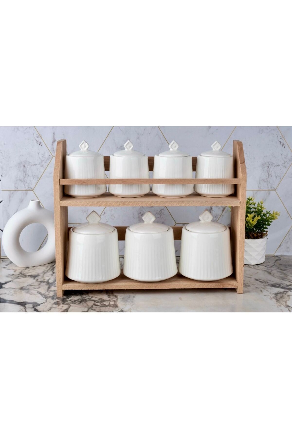 Ahşap Standlı 7’li Porselen Baharat Saklama Kavanoz Seti Baharatlık Takımı Ahşap Standlı 7’li Porselen Baharat Saklama Kavanoz Seti Baharatlık Takımı 8090090906 تک سایز