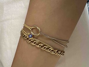 925 Ayar Gümüş Çift Renk Düğüm Model Bileklik 925 Ayar Gümüş Çift Renk Düğüm Model Bileklik NRZ999682 تک سایز