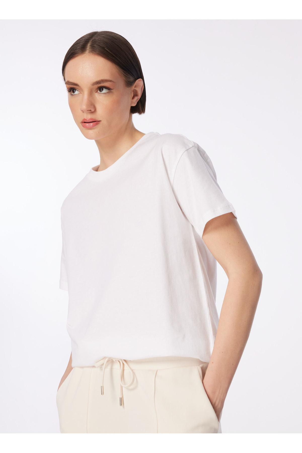 Beyaz Kadın Bisiklet Yaka Basic Fit T-Shirt TENGIZ Beyaz Kadın Bisiklet Yaka Basic Fit T-Shirt TENGIZ TEO XL