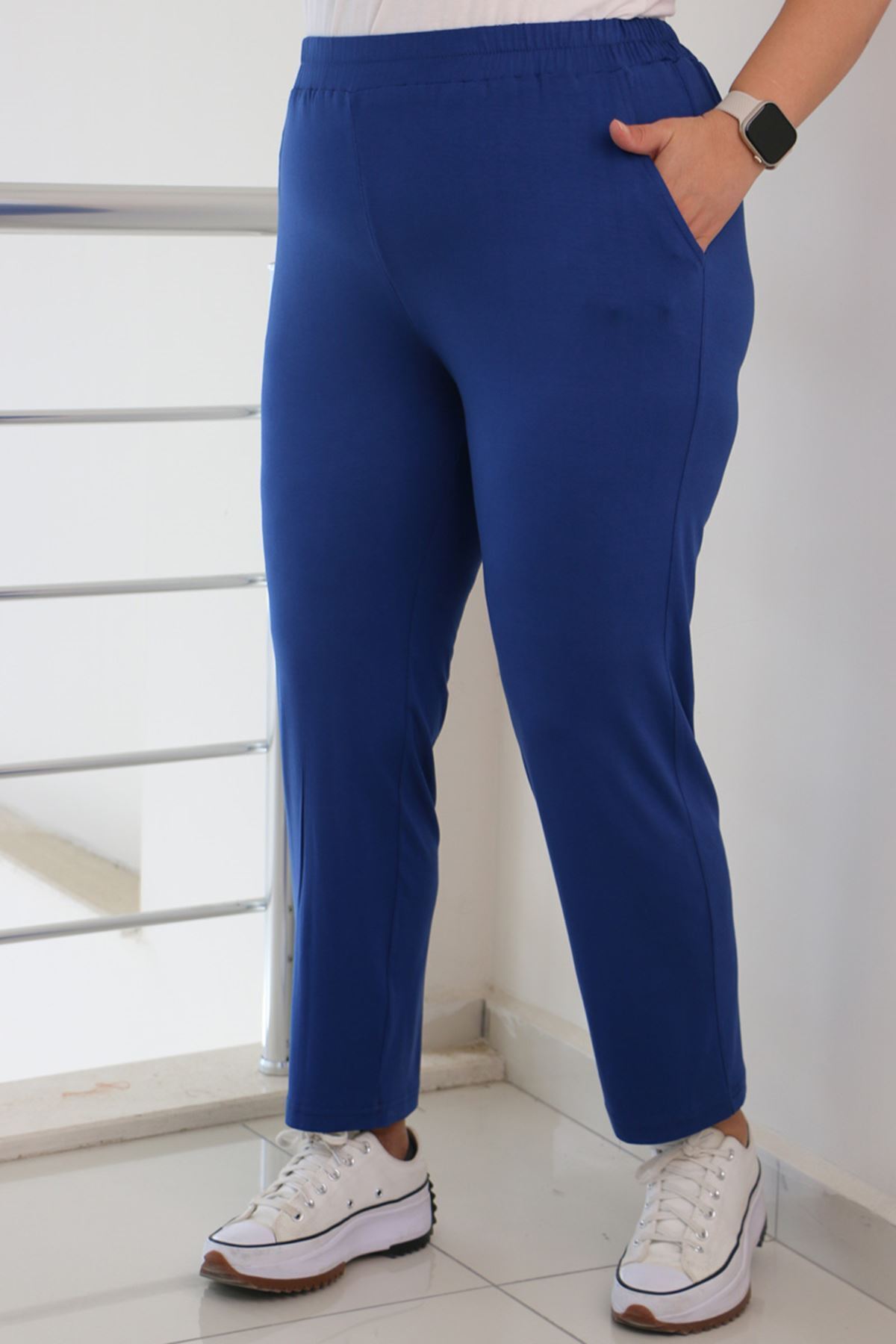 39001 Büyük Beden Yüksek Beli Lastikli Penye Pantolon - İndigo 39001 Büyük Beden Yüksek Beli Lastikli Penye Pantolon - İndigo 9XL