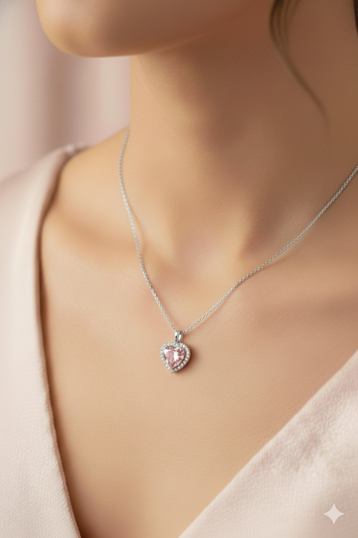 Gümüş Renk Pembe Kalpli Çelik Kolye Gümüş Renk Pembe Kalpli Çelik Kolye 00022 45