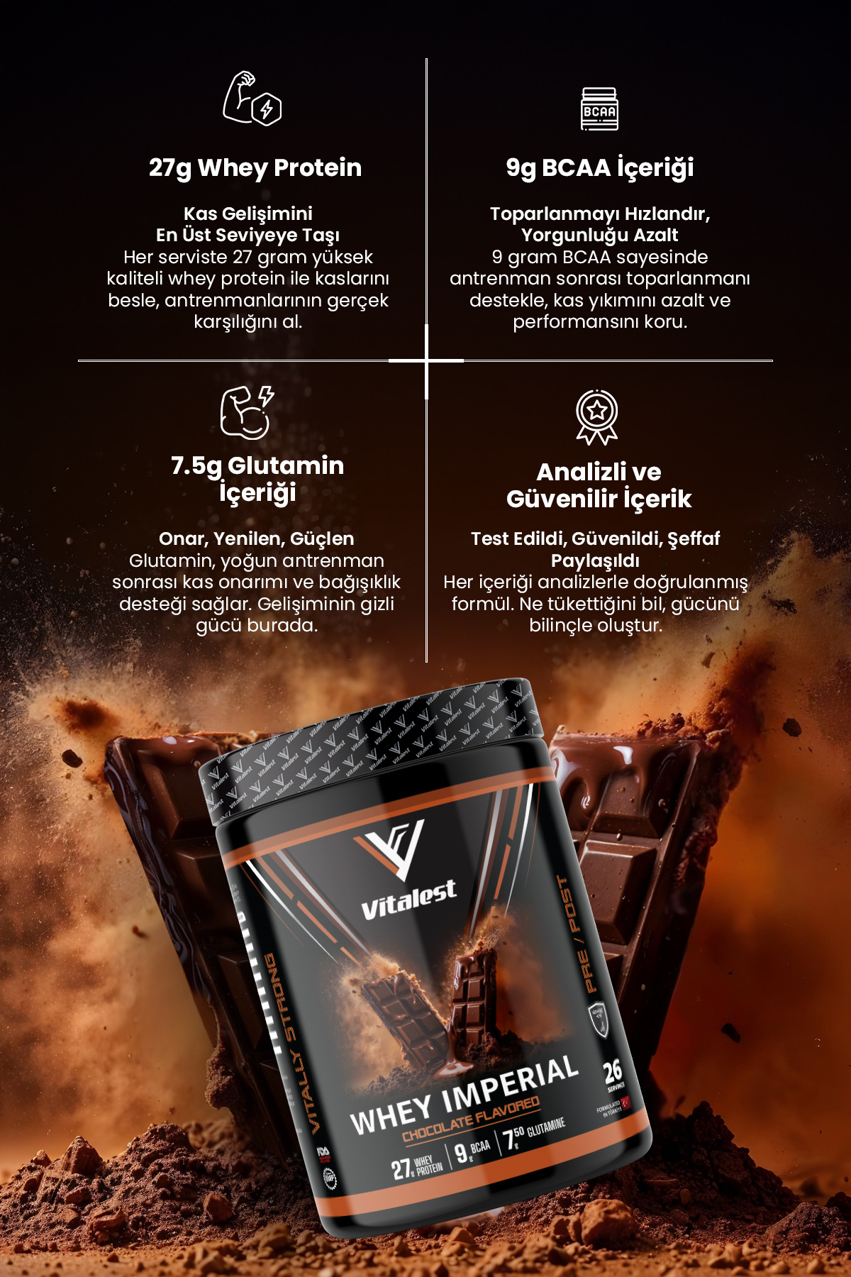 Whey Imperial Çikolata Aromalı 988G. Protein Tozu 26 Servis Whey Imperial Çikolata Aromalı 988G. Protein Tozu 26 Servis M03666 تک سایز