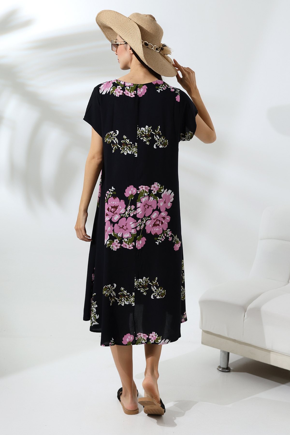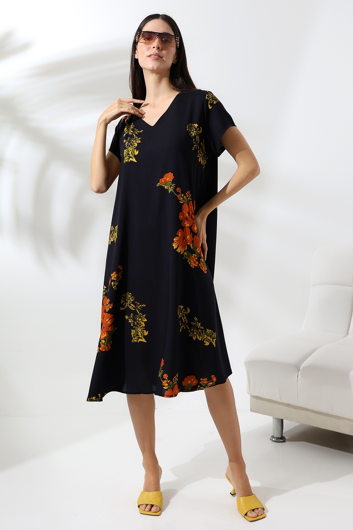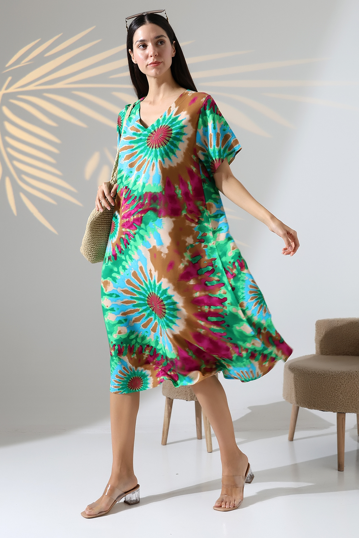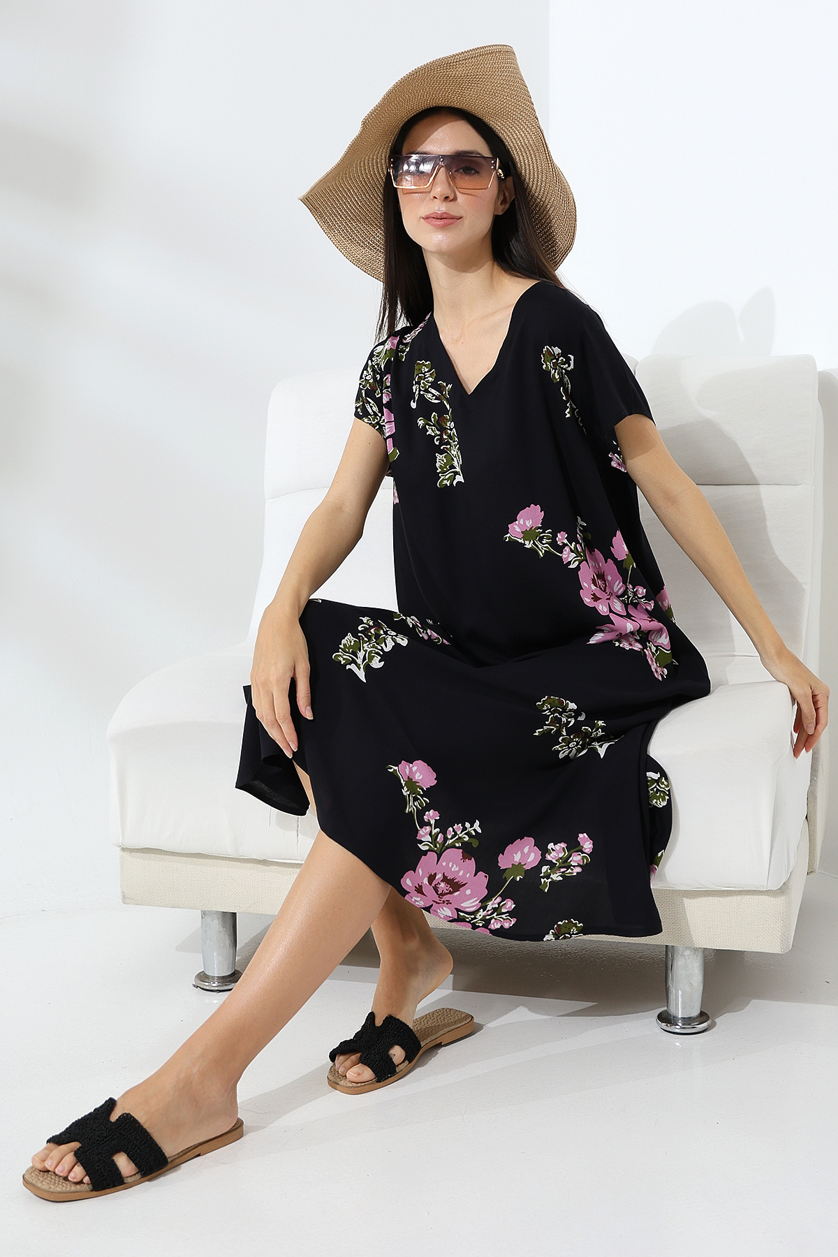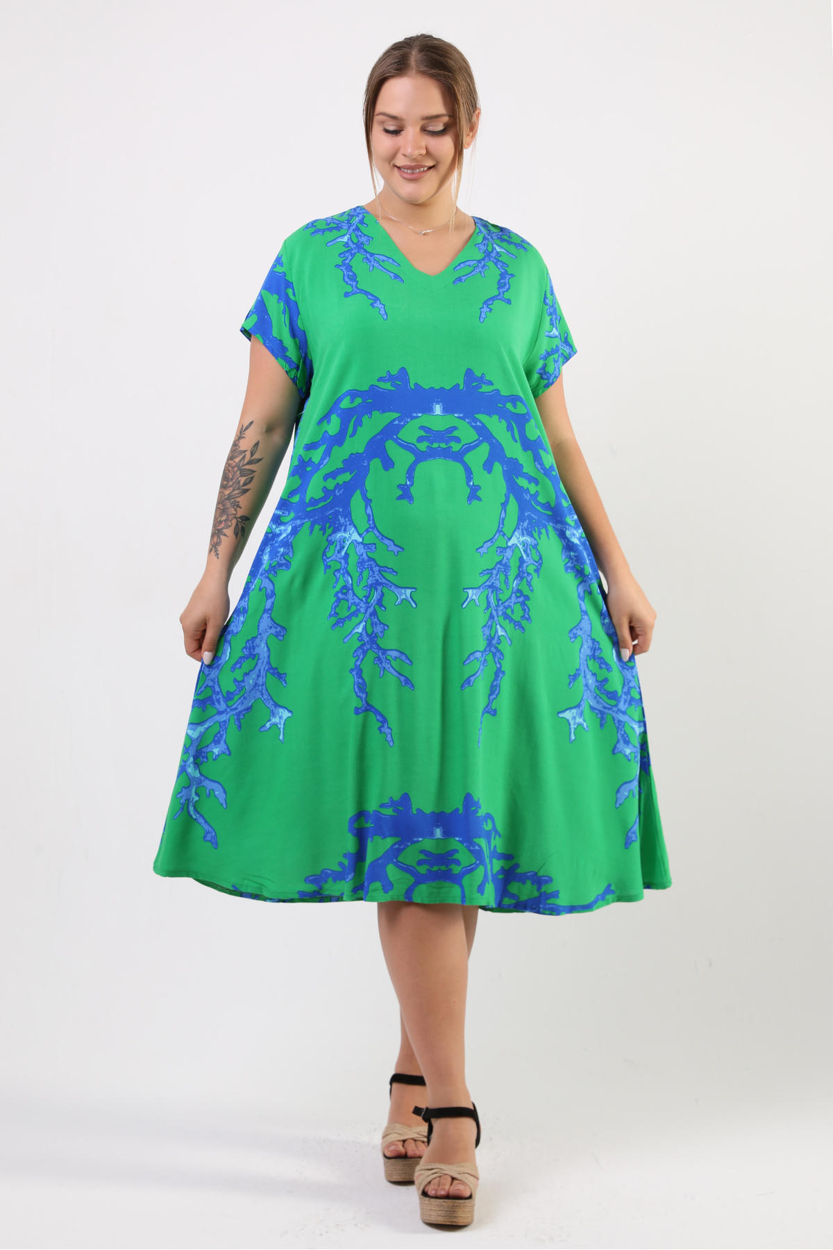 Likapa Yazlık Büyük Beden Viskon V Yaka Kısa Kol Elbise 2688 Likapa Yazlık Büyük Beden Viskon V Yaka Kısa Kol Elbise 2688 2XL