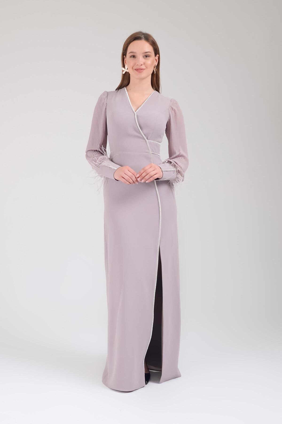 Siyah Şifon Kollu Krep Abiye Elbise Siyah Şifon Kollu Krep Abiye Elbise P-0000013428 50
