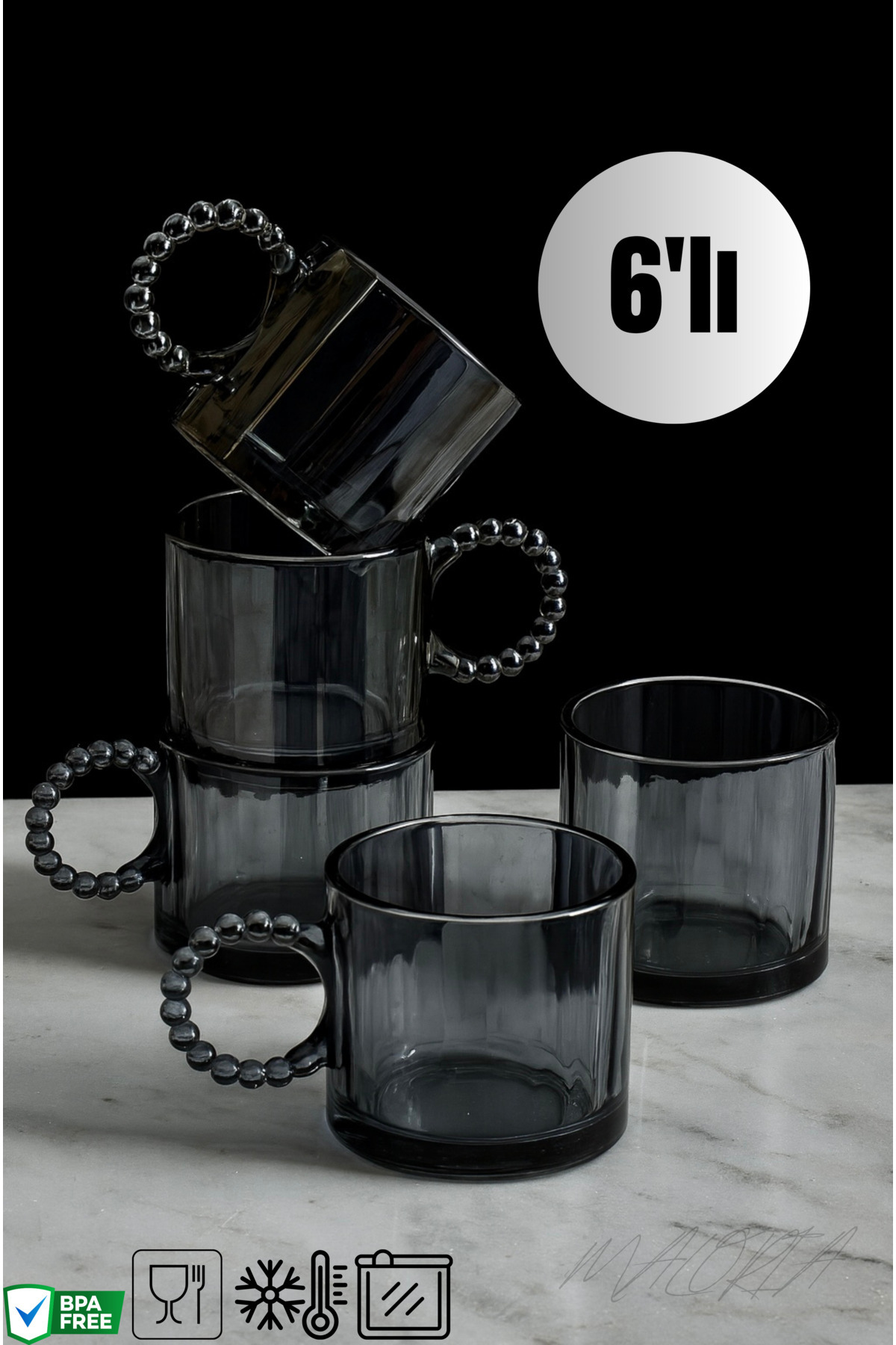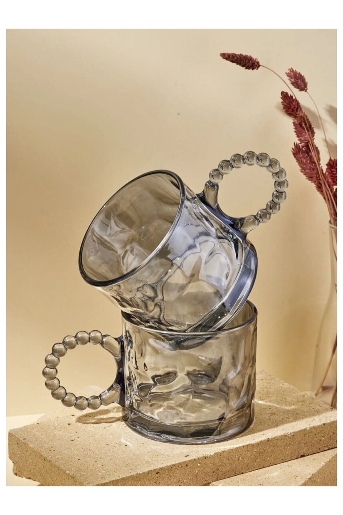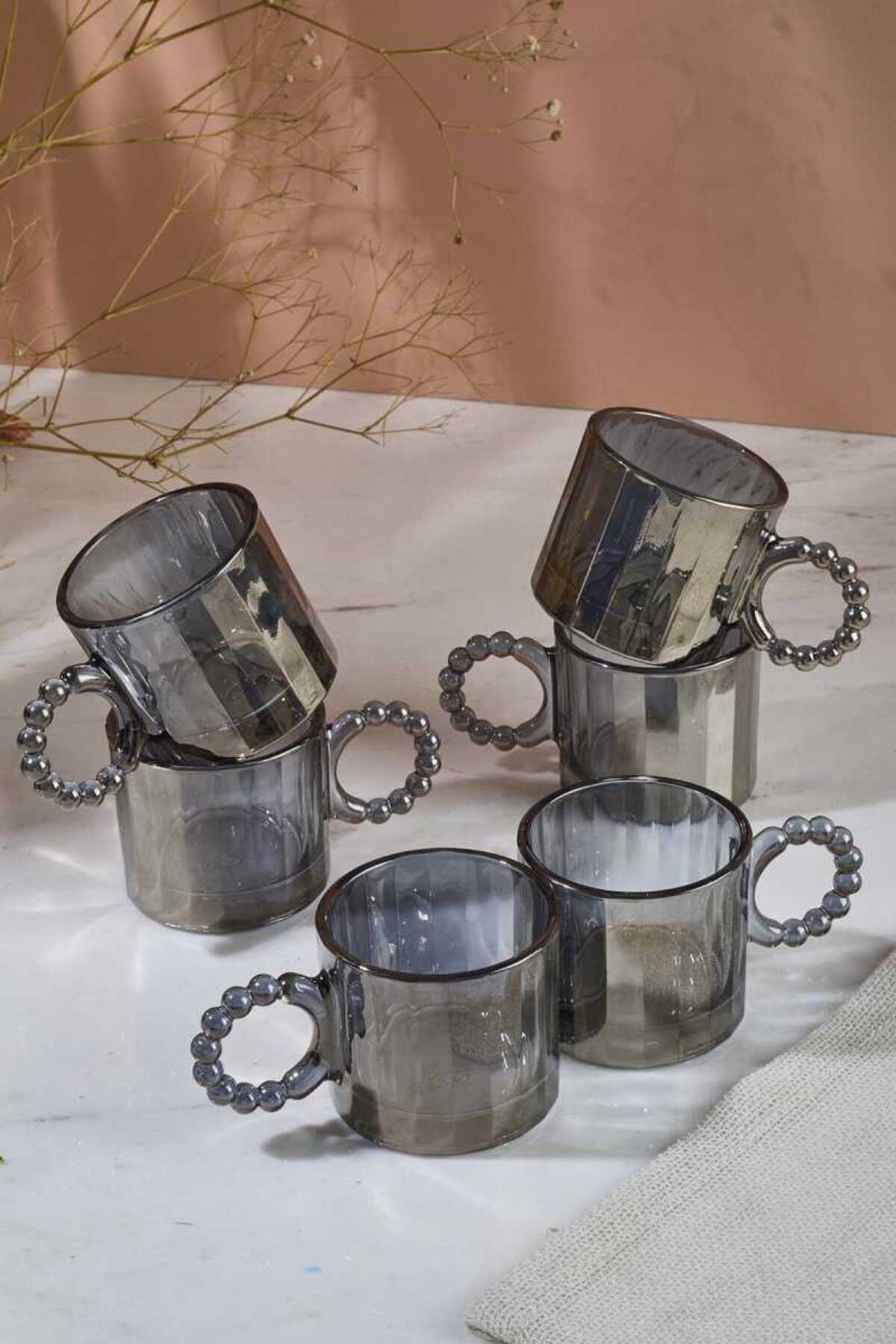 6 Adet Cam Füme Renk Boncuk Kulplu Bardak Kupa Çay Kahve Meşrubat 6 Adet Cam Füme Renk Boncuk Kulplu Bardak Kupa Çay Kahve Meşrubat buncukkupa تک سایز