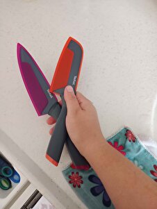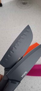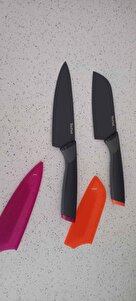 BAYILDIMMMM BAYILDIMMMMMM!!! Yok böyle güzel bıçak. 1 aydır kullanıyorum aşağı yukarı. Bunlar bıçaksa ben bunlardan önce bıçak diye ne kullanmışım dedirtti bana. Yemek yapmayı zaten çok seviyordum artık çok daha fazla keyif alıyorum. Yalnız özenli kullanıyorum. Makineye atmıyorum hep elimde yıkıyorum ve işim bitince kılıflarına geri koyuyorum. Aşırı keskinler kullanırken de dikkatli kullanmak gerekiyor. Biraz kontrolü kaybetseniz bir yerlerinizi kesiyorsunuz. Saplarının ince olması da benim gibi eli küçük hanımlara büyük kolaylık. Ele kolayca oturuyor. Kullanımı çok rahat.