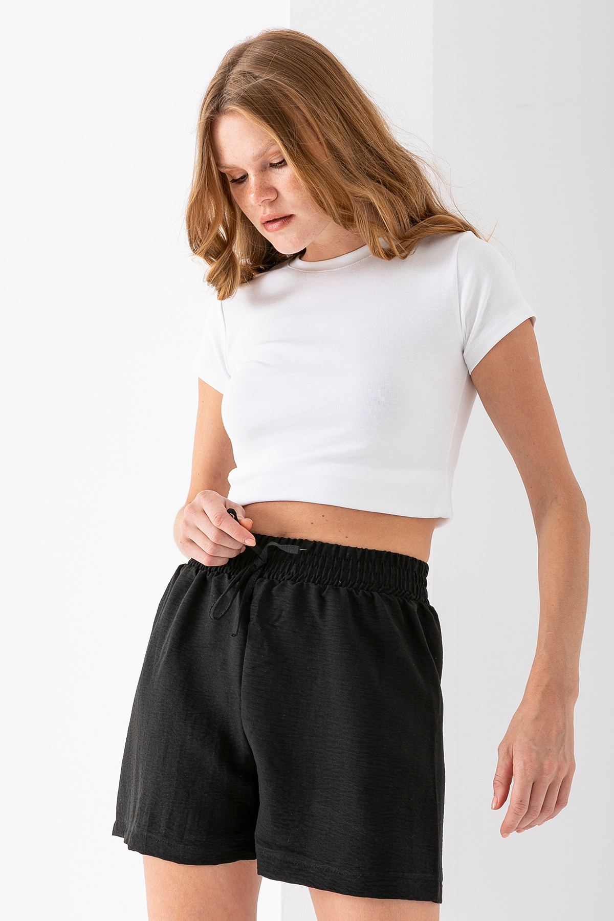 Kadın Beli Lastikli Bağcık Detaylı Aerobin Şort - Siyah - 5327 Kadın Beli Lastikli Bağcık Detaylı Aerobin Şort - Siyah - 5327 421026149 42