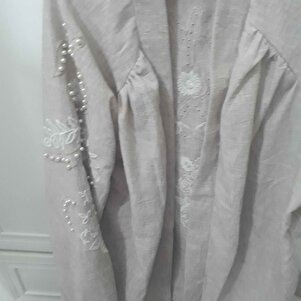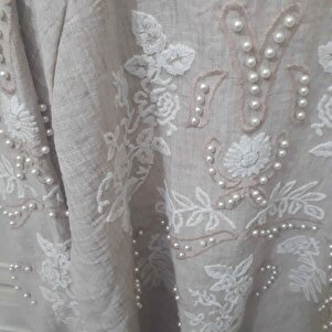 Kadın Arkası Ve Kolları Nakışlı Inci Detaylı Keten Kimono Ceket Ve Pantolon Alt Üst Takım Kadın Arkası Ve Kolları Nakışlı Inci Detaylı Keten Kimono Ceket Ve Pantolon Alt Üst Takım 218M L