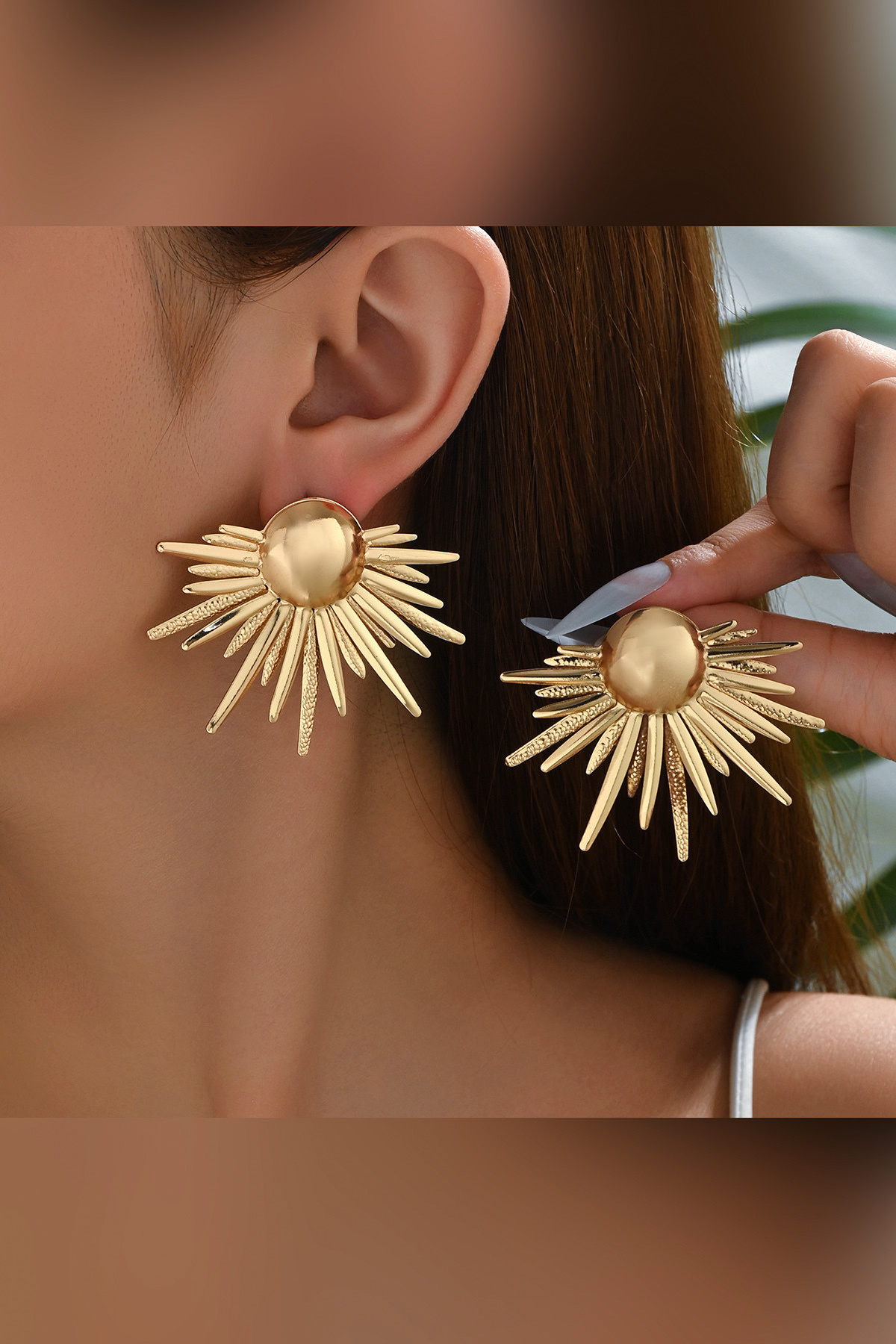 Palmiye Yaprakları Gold Küpe Palmiye Yaprakları Gold Küpe kyola10048 5 cm