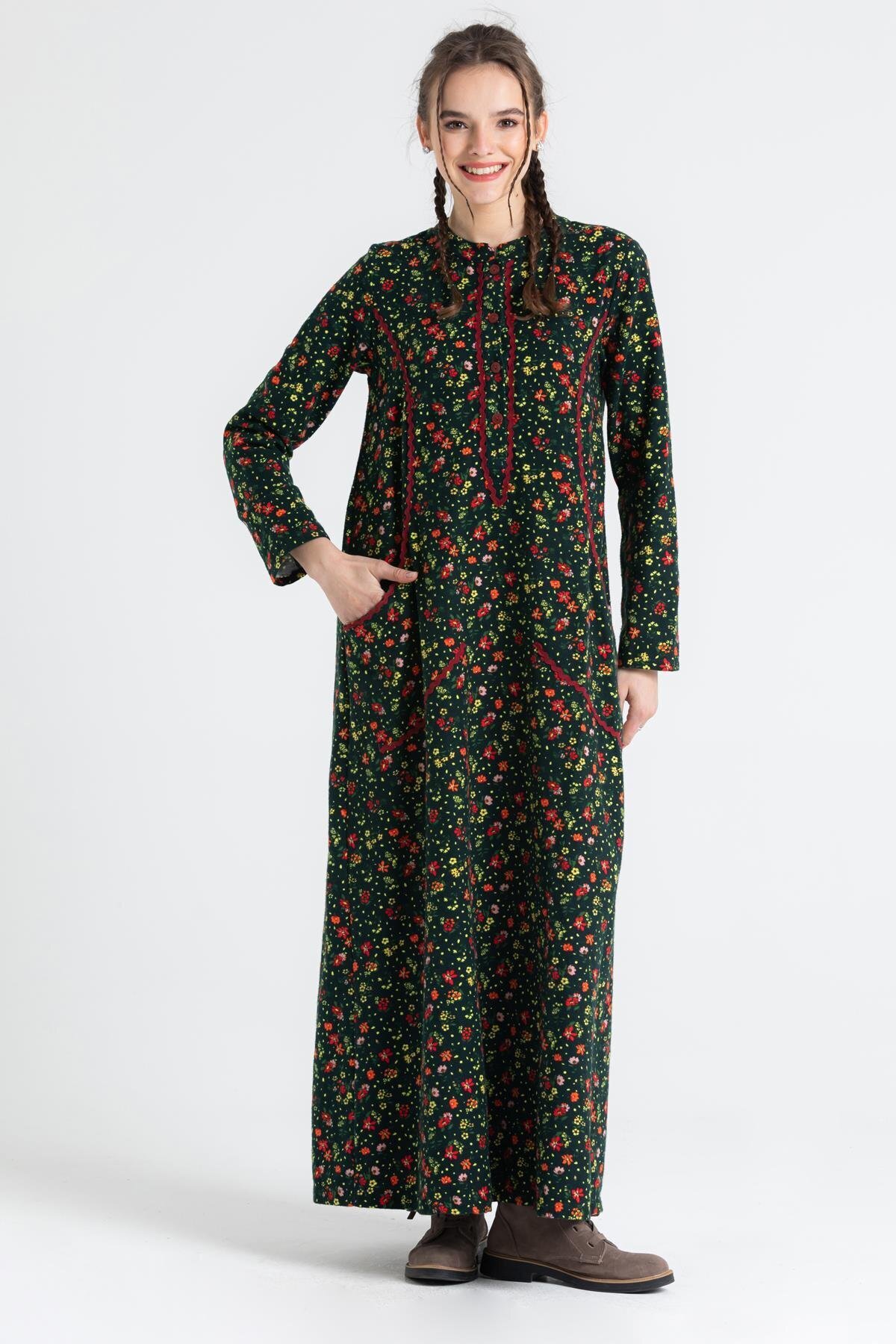 ÖNÜ KRUVAZE KAPAMALI UZUN UZUN ELBİSE Yeşil ÖNÜ KRUVAZE KAPAMALI UZUN UZUN ELBİSE Yeşil MH06.285 XL