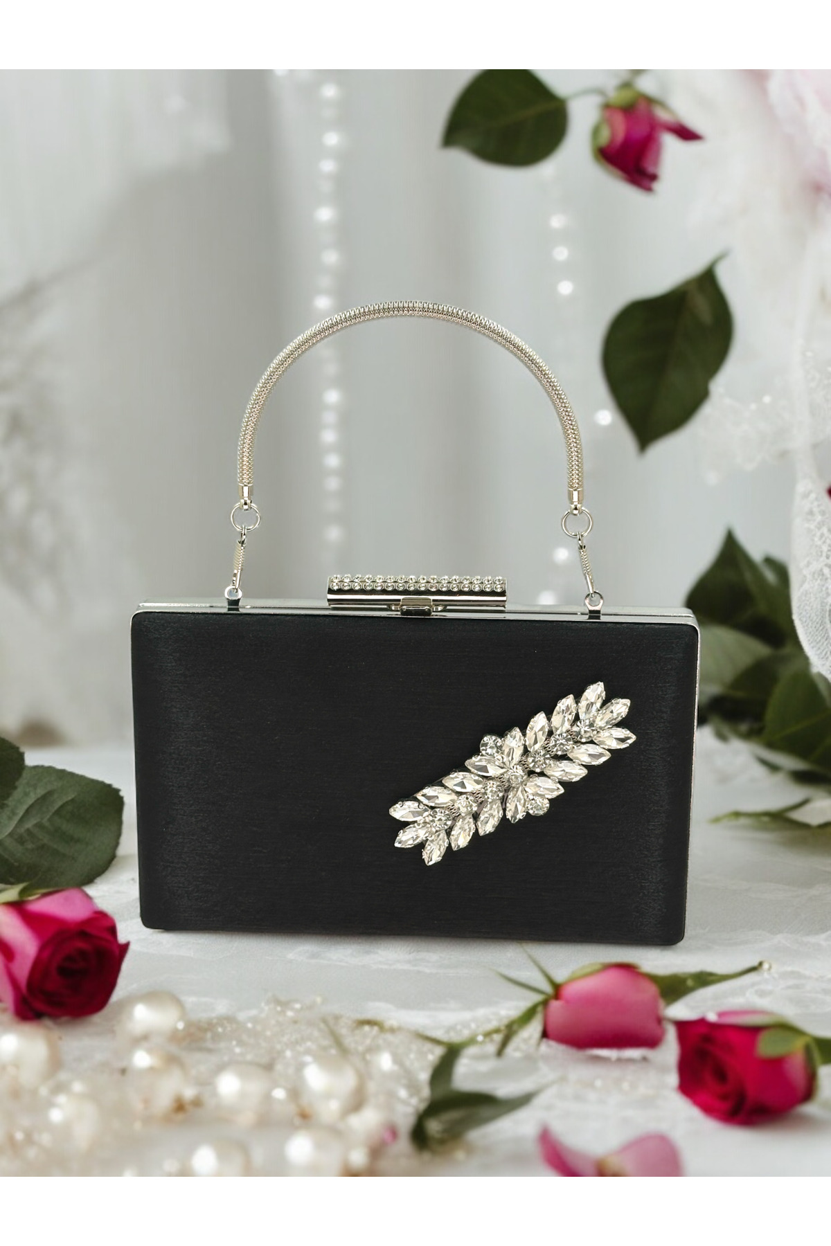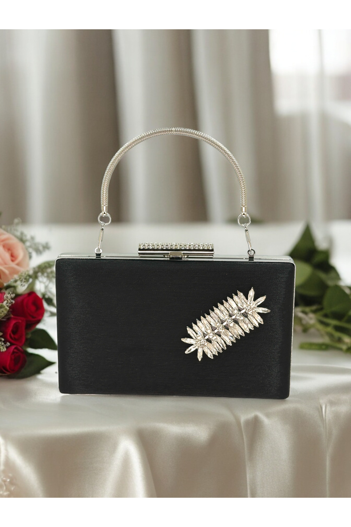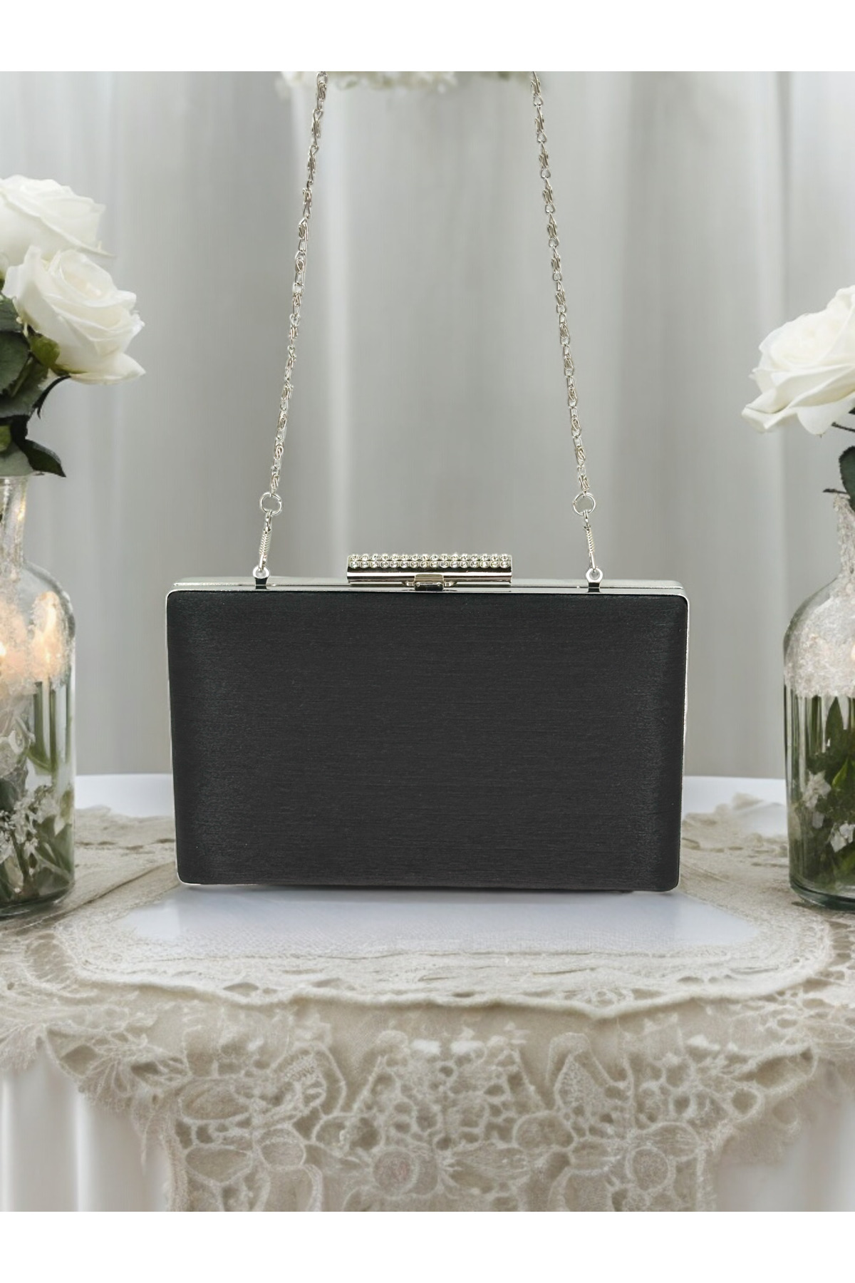 Siyah Renk İthal Çizgili Saten Kristal Taşlı Metal Kulplu Zincirli Abiye Çanta Düğün Nişan Siyah Renk İthal Çizgili Saten Kristal Taşlı Metal Kulplu Zincirli Abiye Çanta Düğün Nişan 135 T Saplı Çizgili Saten Taşlı تک سایز