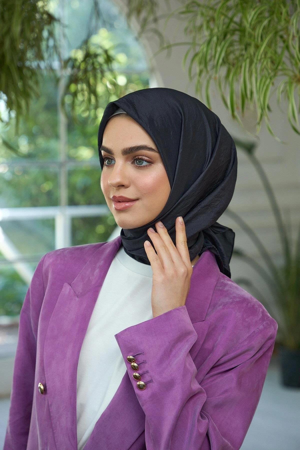 Düz Desen Vual Eşarp Antrasit Vual İpek Eşarp - 10100-13 Düz Desen Vual Eşarp Antrasit Vual İpek Eşarp - 10100-13 90x90