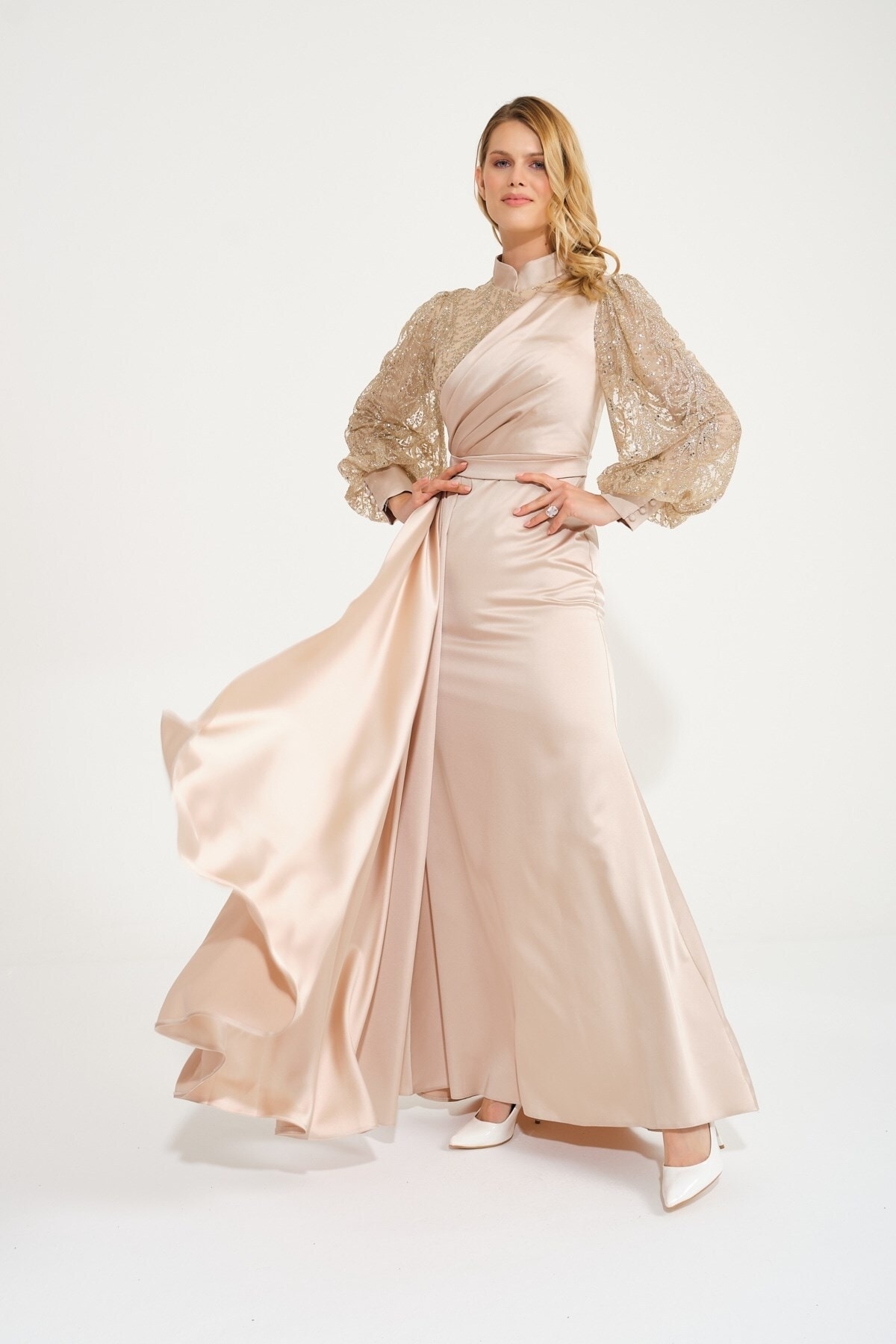 Siyah Kolları Şifon Piliseli Abiye Elbise Siyah Kolları Şifon Piliseli Abiye Elbise P-0000013098 48