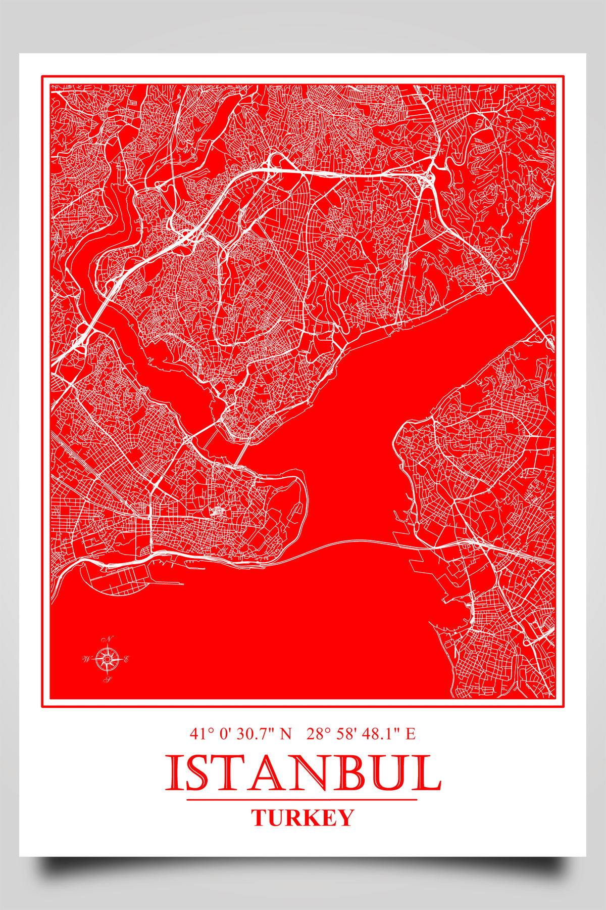 İstanbul Haritası - Beyaz Çerçeve İstanbul Haritası - Beyaz Çerçeve dstn0088 23 x 32