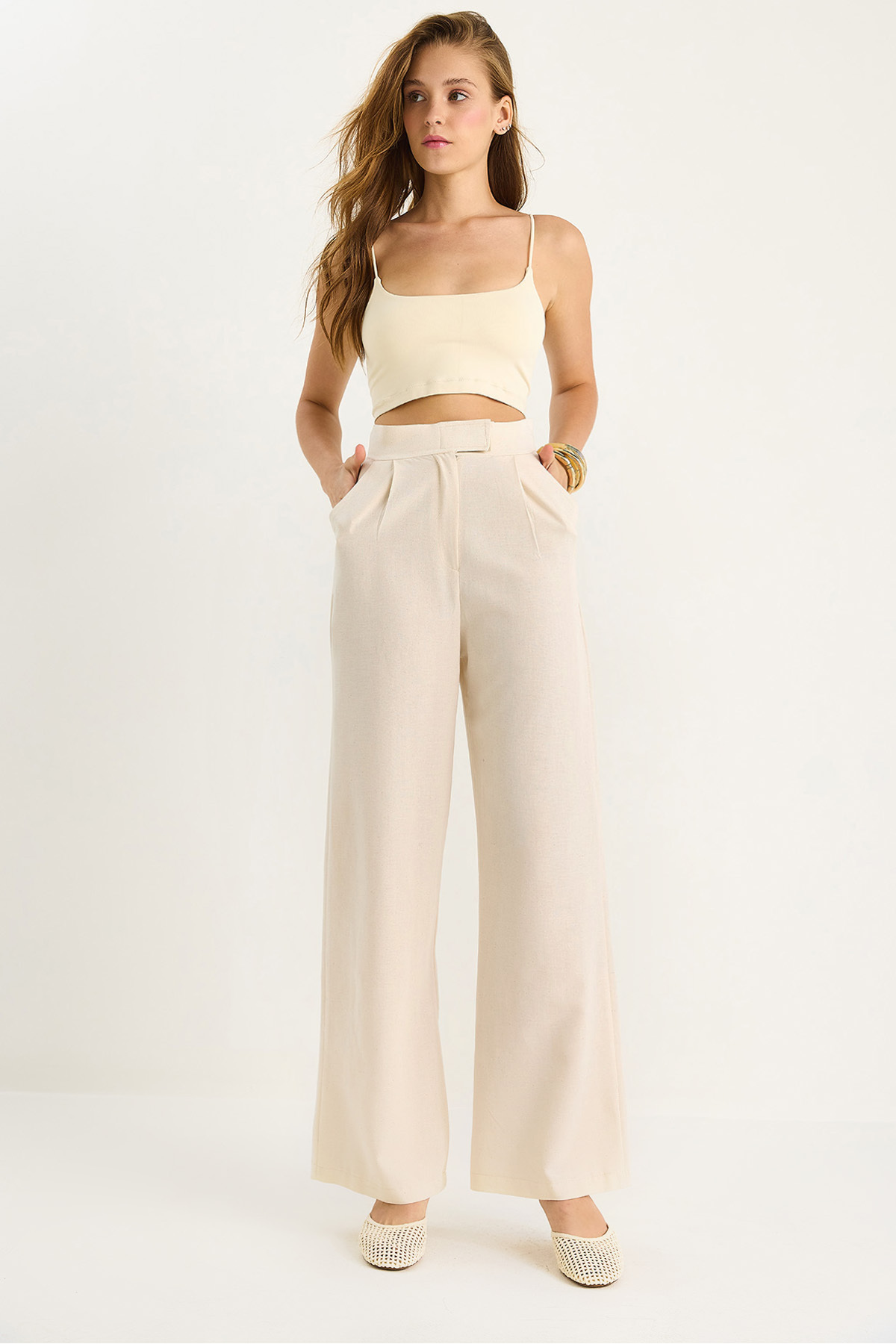 Kadın Beli Lastikli Bağlamalı Havuç Kesim Keten Pantolon 60251267 Kadın Beli Lastikli Bağlamalı Havuç Kesim Keten Pantolon 60251267 40