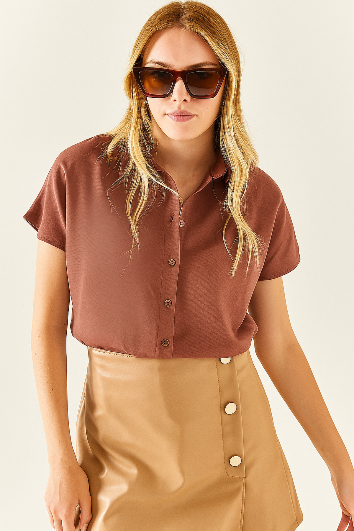 Müslin Kadın Oversize Gömlek | Taş MKS166965-01 Müslin Kadın Oversize Gömlek | Taş MKS166965-01 L