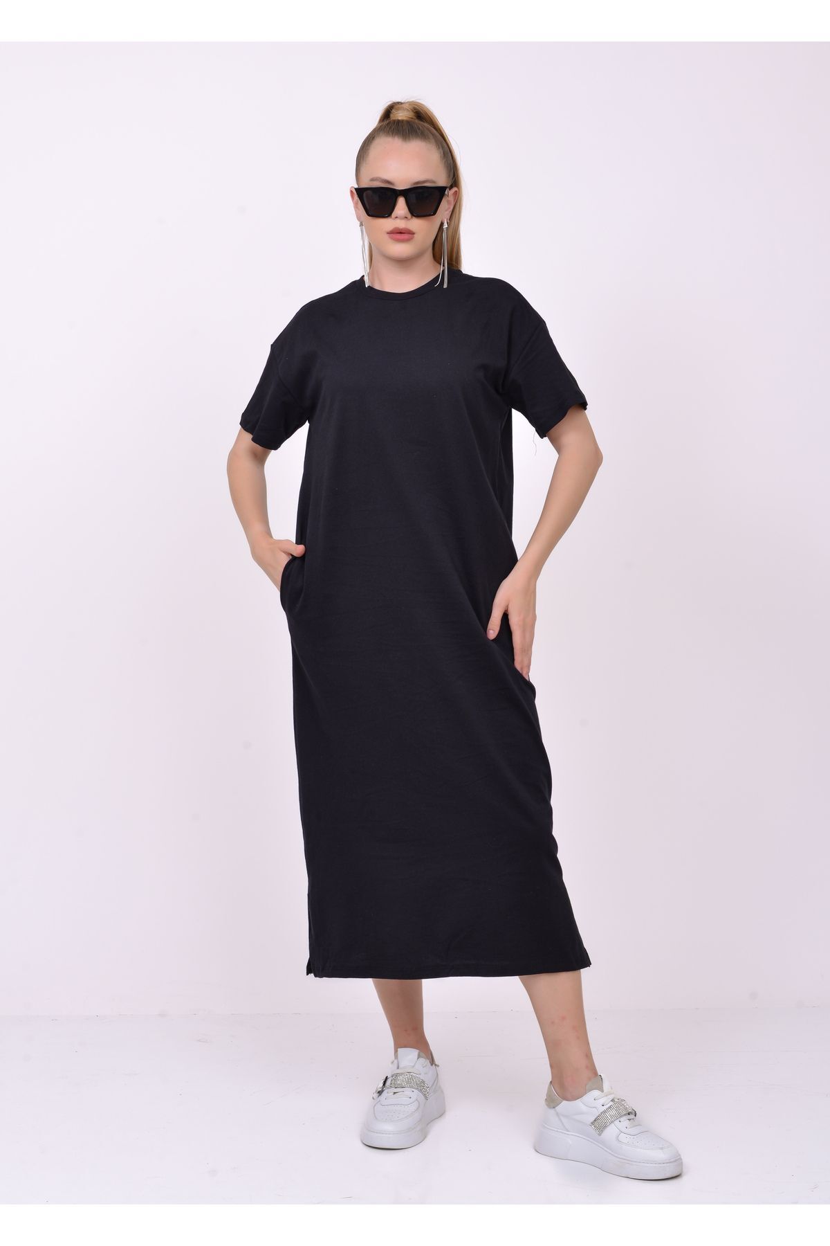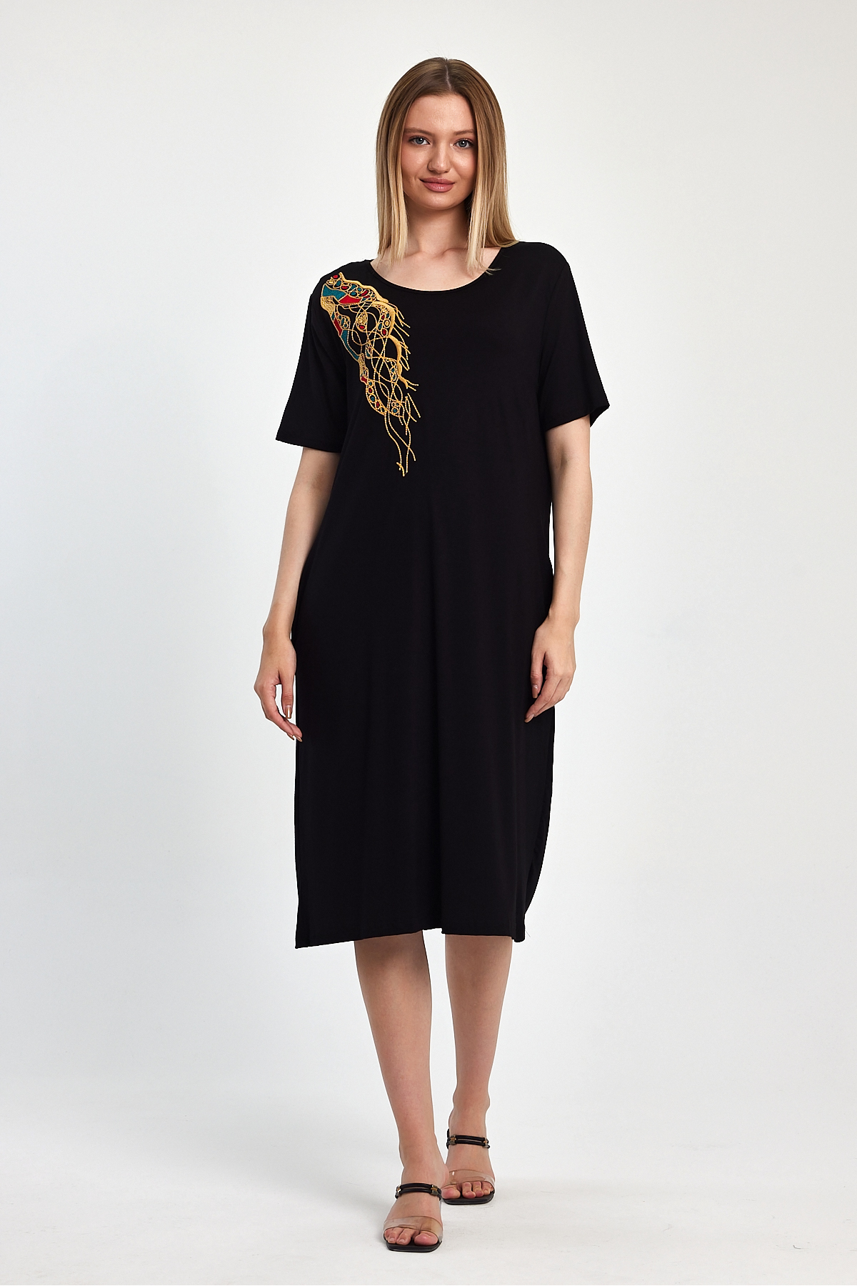 Kadın Siyah Nakış İşlemeli Kısa Kollu Penye Elbise Kadın Siyah Nakış İşlemeli Kısa Kollu Penye Elbise 1048-VW 2XL