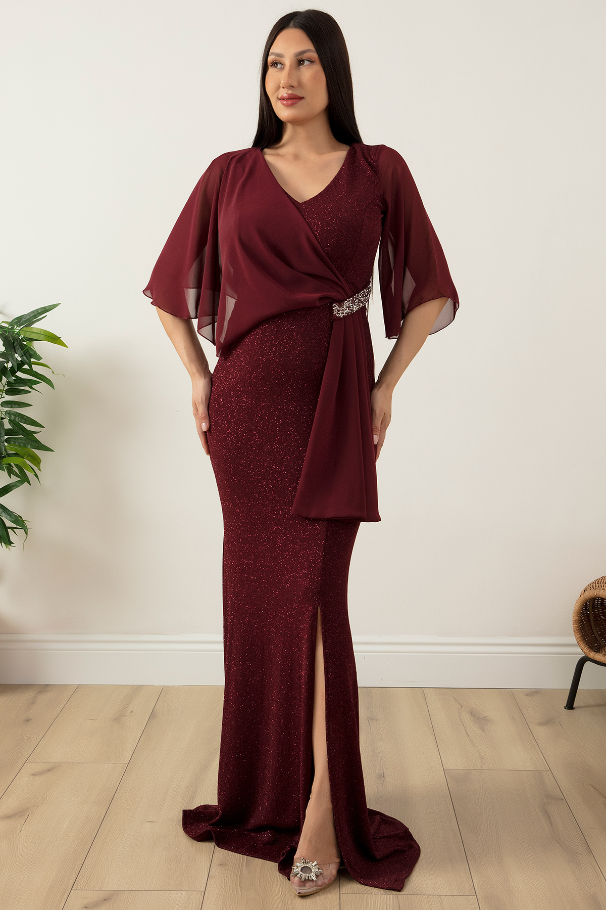 SİMLİ ŞİFON TAŞLI ABİYE ELBİSE SİMLİ ŞİFON TAŞLI ABİYE ELBİSE 224793 XL